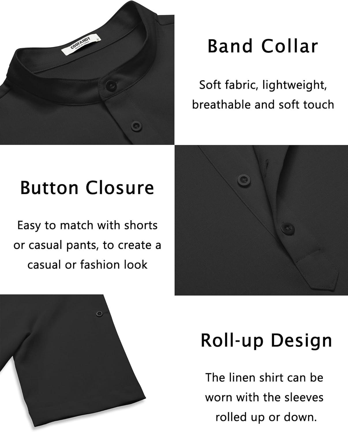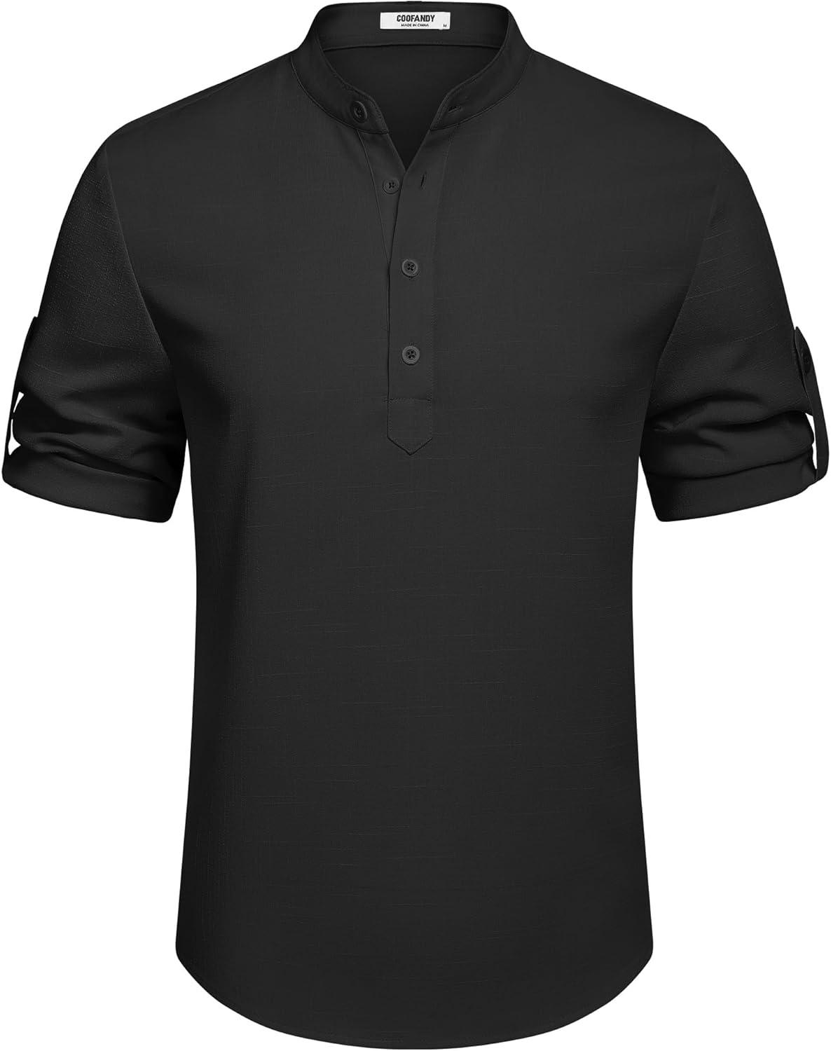 Be the first to review “COOFANDY Men’s Casual Henley Shirt Short Sleeve Band Collar Linen Shirt Summer Beach Hippie T-Shirts(Black)”