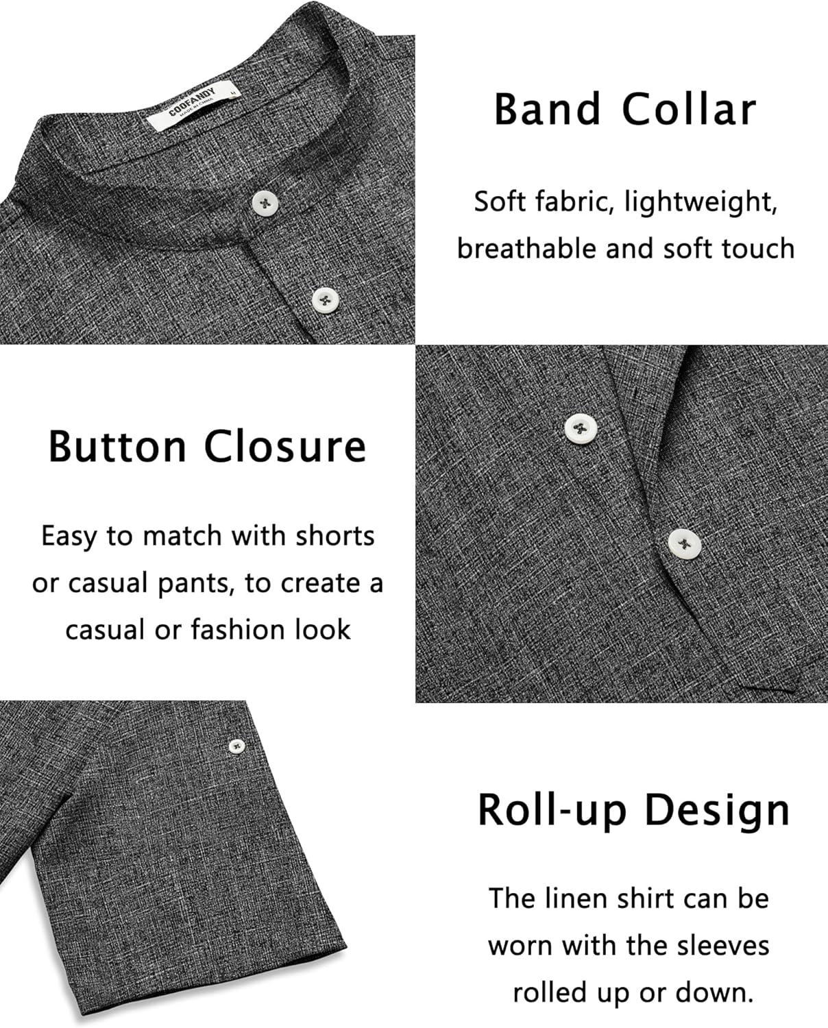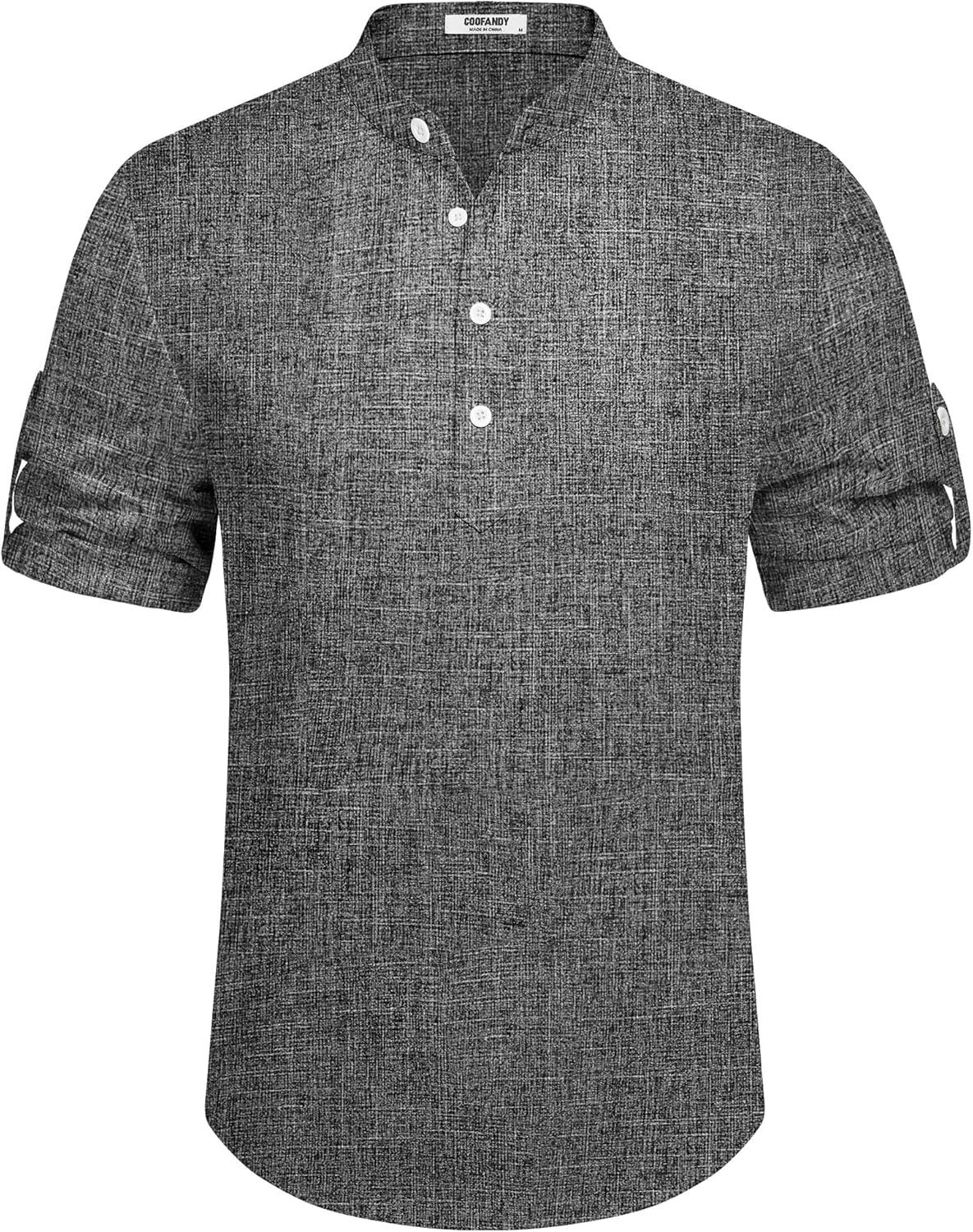 Get up to 50% off on COOFANDY Men’s Casual Henley Shirt Short Sleeve Band Collar Linen Shirt Summer Beach Hippie T-Shirts(Dark Gray) styles during our spring sale event.