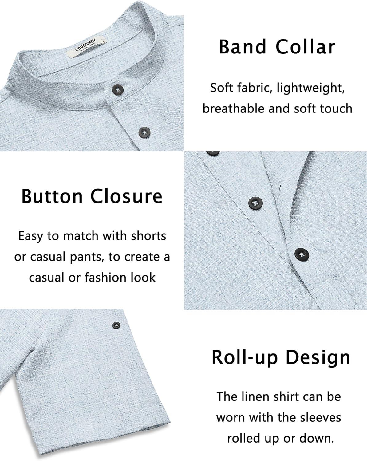 COOFANDY Men’s Casual Henley Shirt Short Sleeve Band Collar Linen Shirt Summer Beach Hippie T-Shirts(Light Grey)
