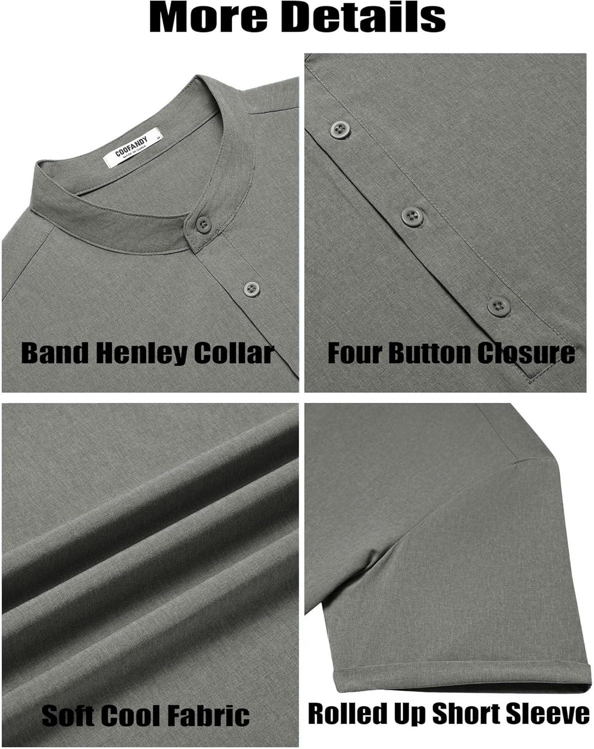 imageCOOFANDY Mens Casual Henley Shirt Short Sleeve Band Collar Shirt Summer Beach Hippie Vacation T Shirt with ButtonDark Grey