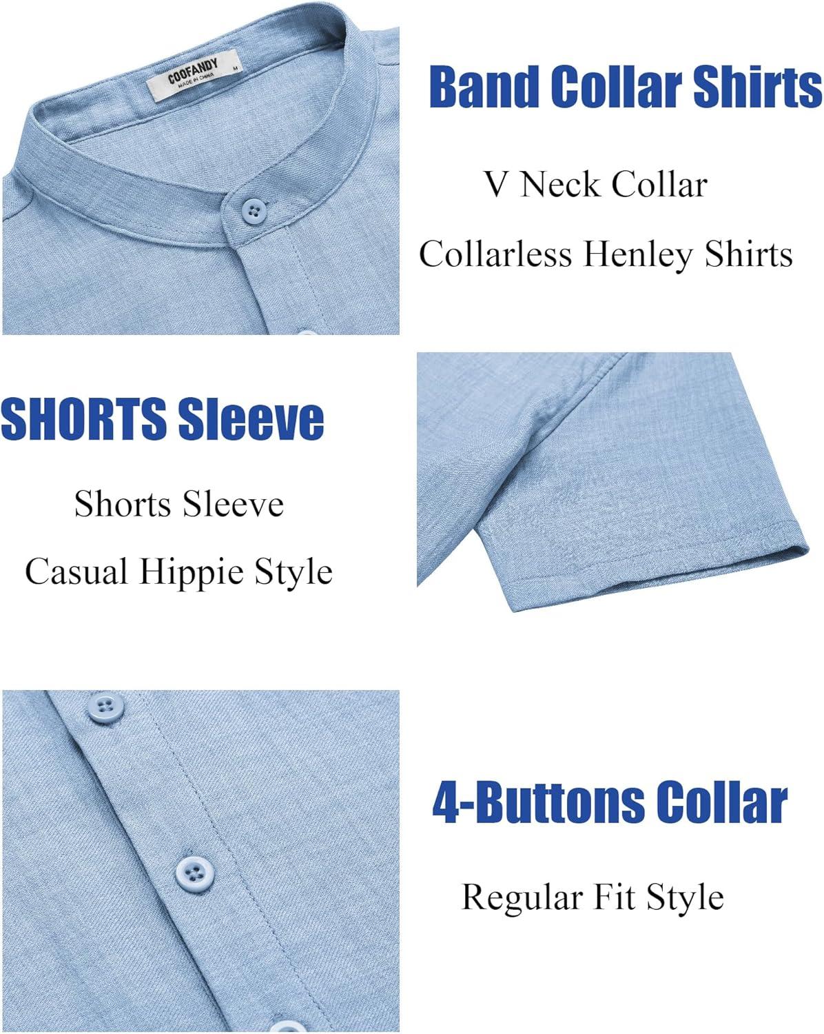 COOFANDY Men's Casual Henley Shirt Short Sleeve Summer Shirts Linen Band Collar Summer Beach Hippie T-Shirts(Light Blue)