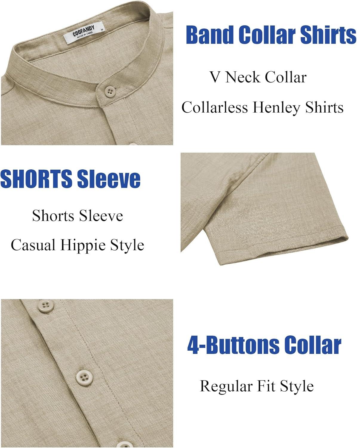 imageCOOFANDY Mens Casual Henley Shirt Short Sleeve Summer Shirts Linen Band Collar Summer Beach Hippie TShirtsLight Khaki