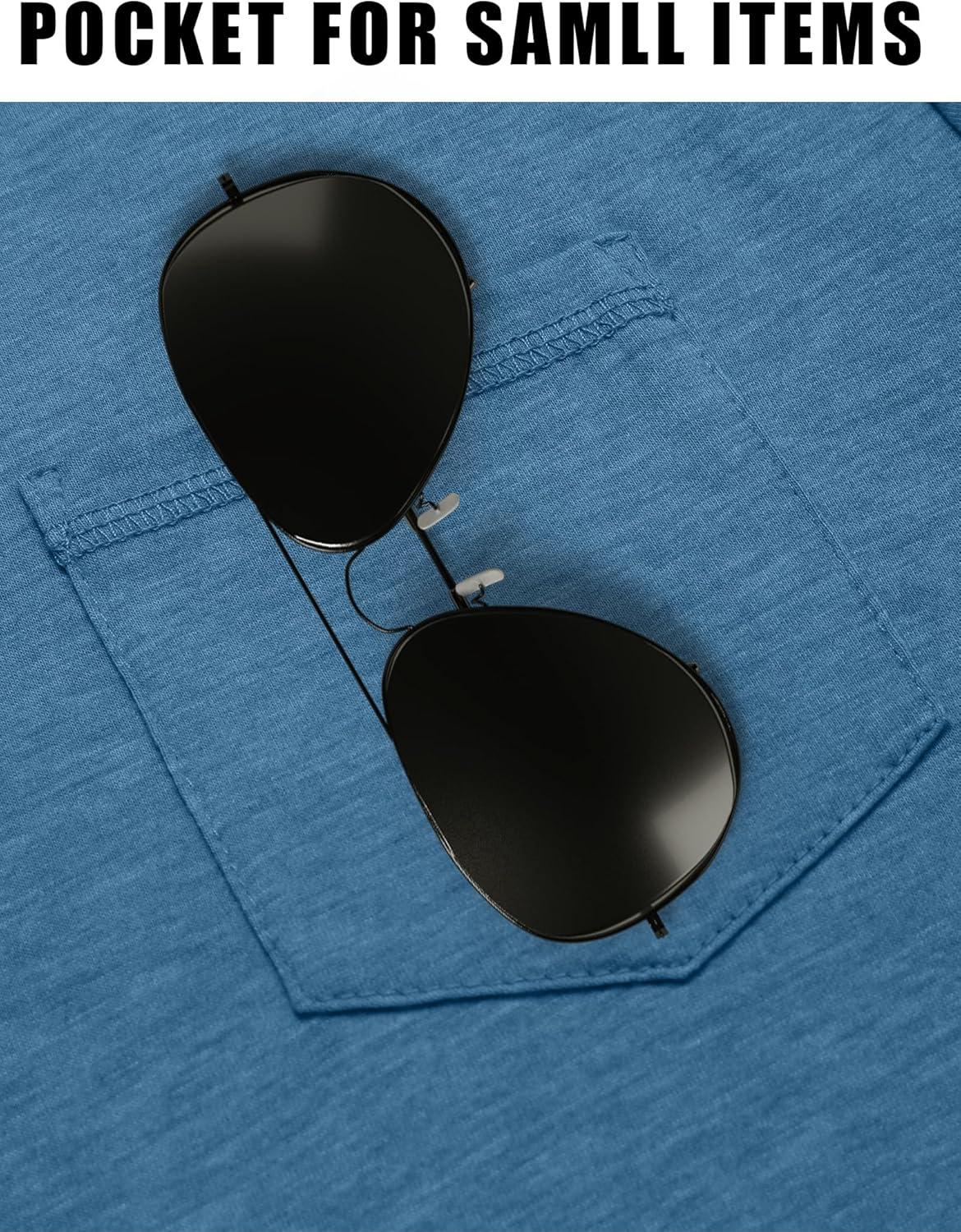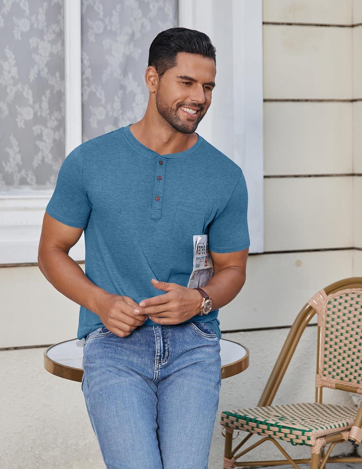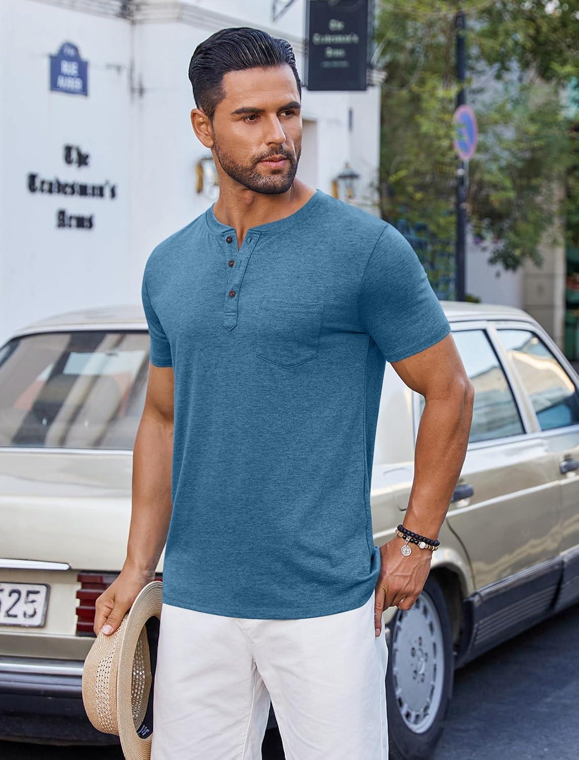 COOFANDY Men's Casual Henley Shirts Short Sleeve Pocket T-Shirts Lightweight Button Henley Pullover Basic Tees(Demin Blue)