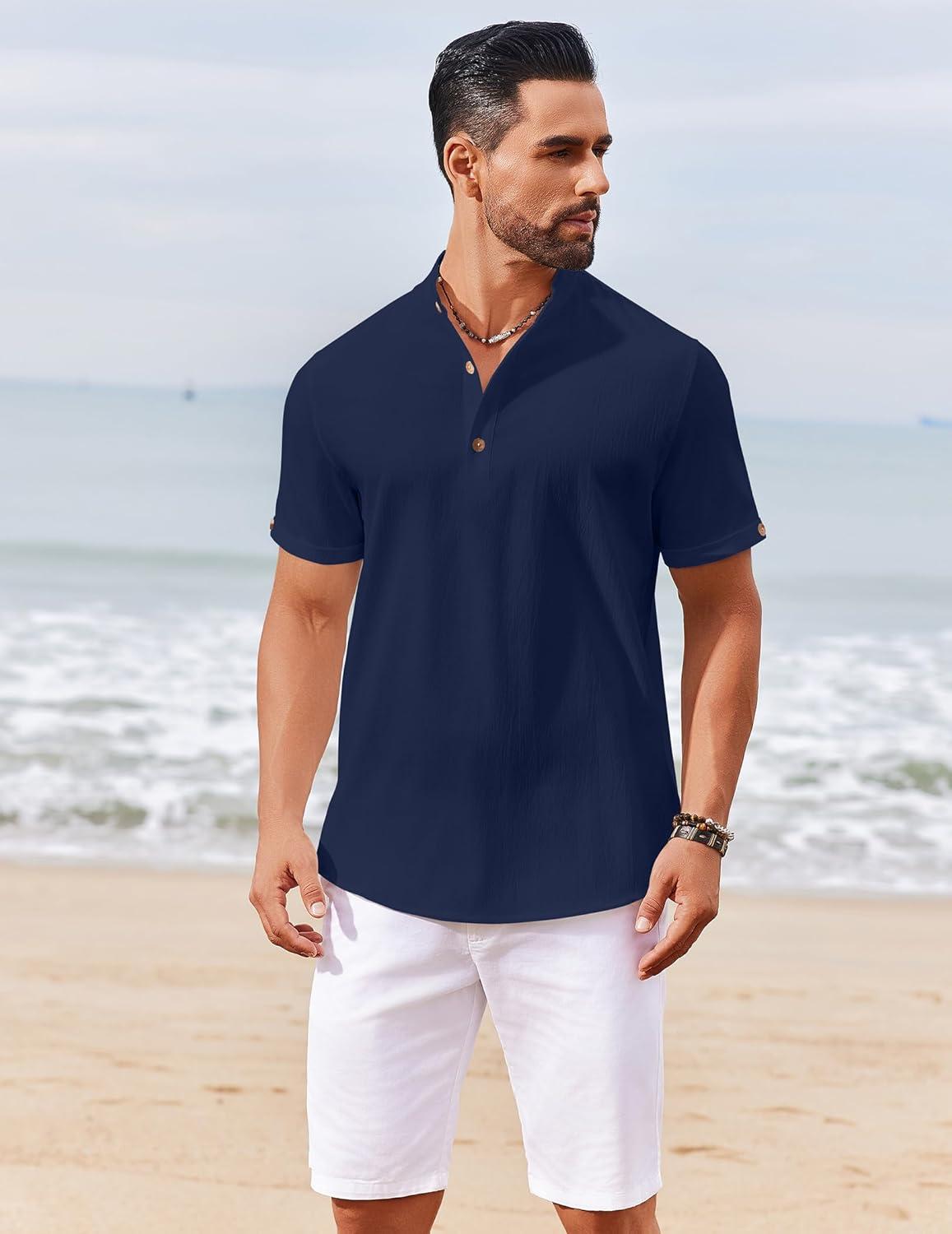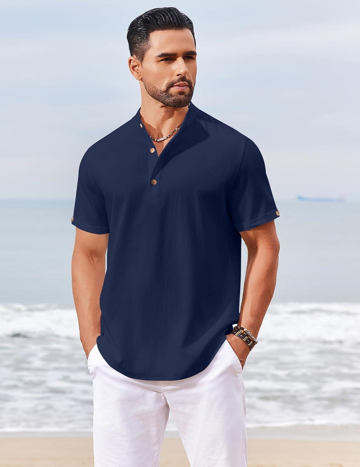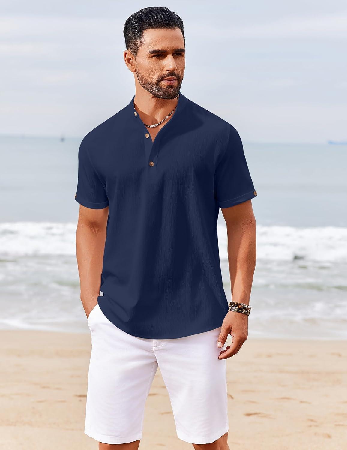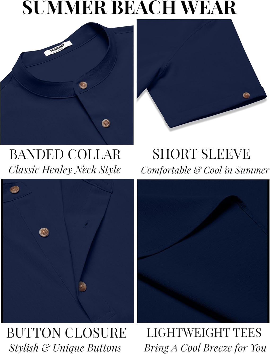Score big savings on COOFANDY Men’s Casual Henley Shirts Short Sleeve Summer Beach T-Shirts Banded Collar Henleys Button Tee Shirt(Navy Blue) during our back-to-school sale. Limited quantities available.