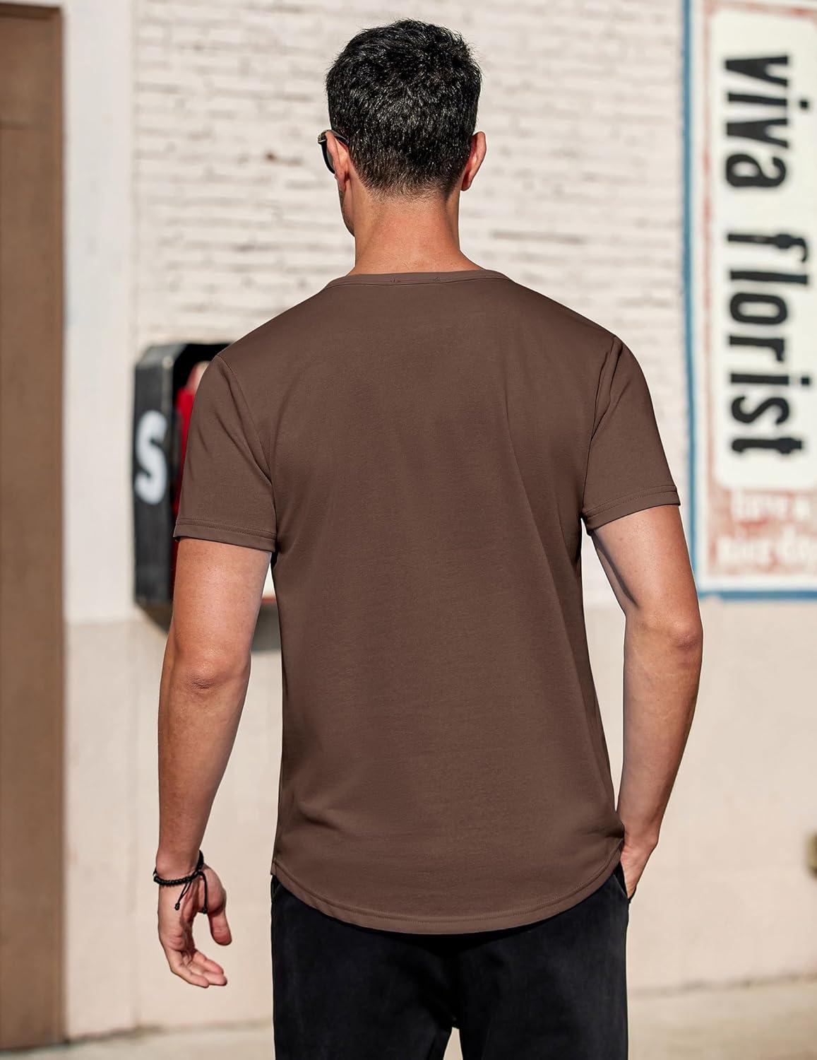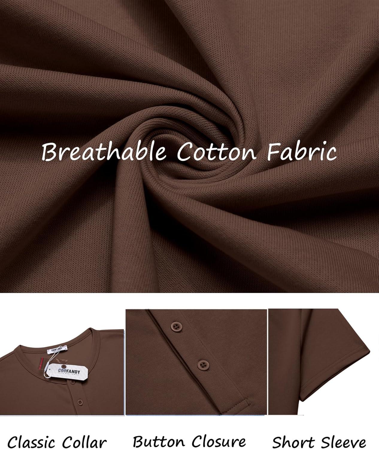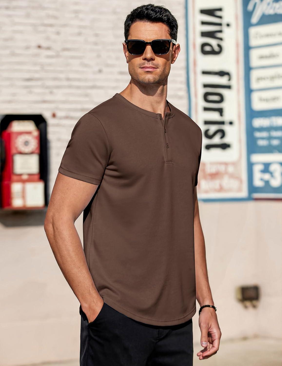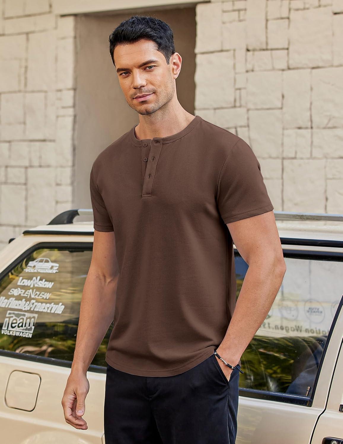COOFANDY Men's Casual Henley T-Shirts Summer Short Sleeve Cotton Shirts Basic Button Tee Tops(Brown)