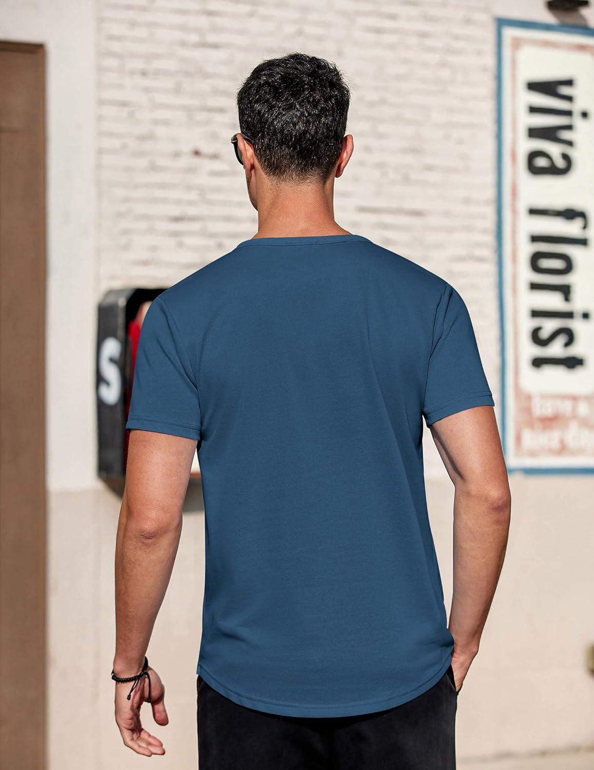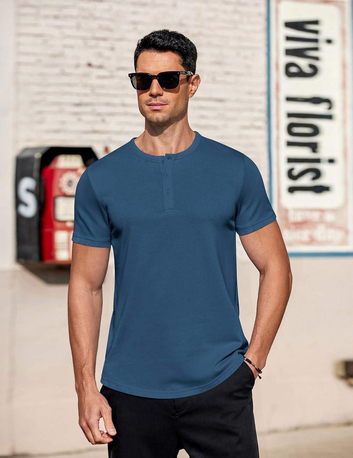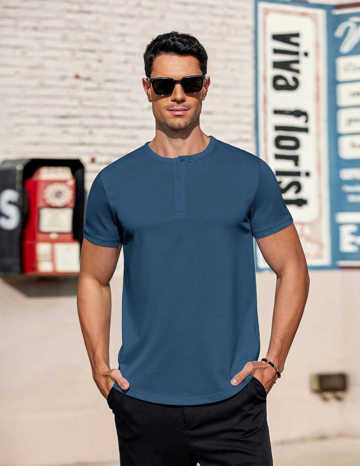 COOFANDY Men's Casual Henley T-Shirts Summer Short Sleeve Cotton Shirts Basic Button Tee Tops(Dark Blue)