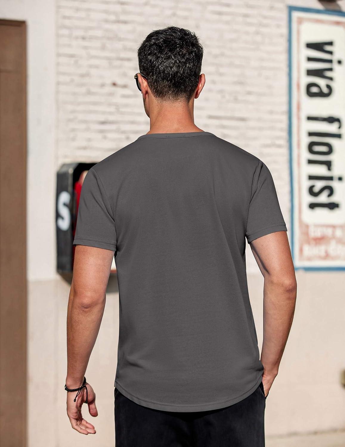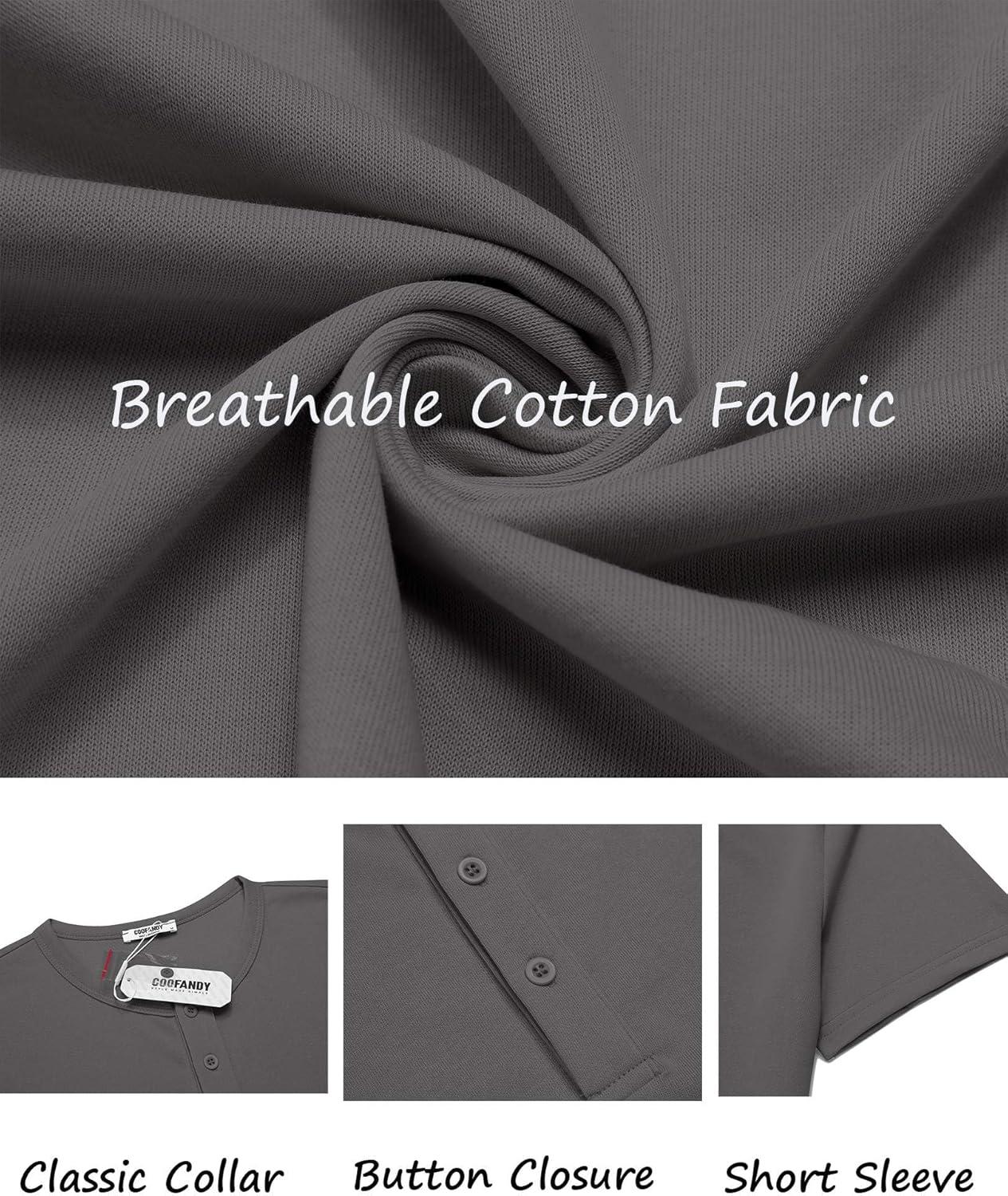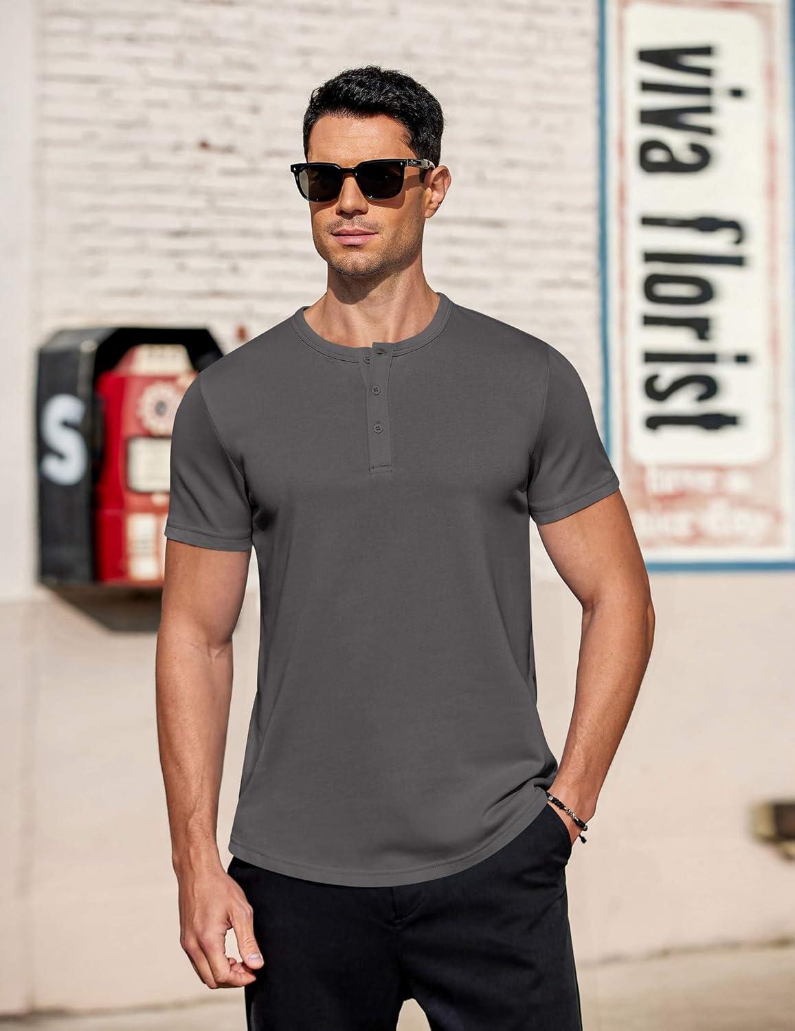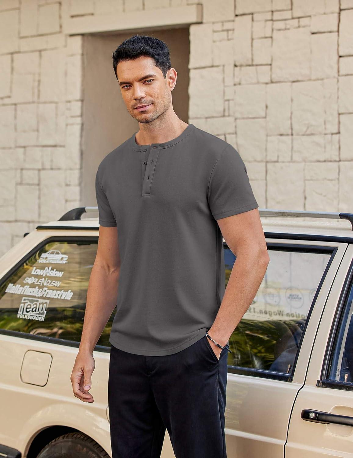 COOFANDY Men's Casual Henley T-Shirts Summer Short Sleeve Cotton Shirts Basic Button Tee Tops(Dark Grey)