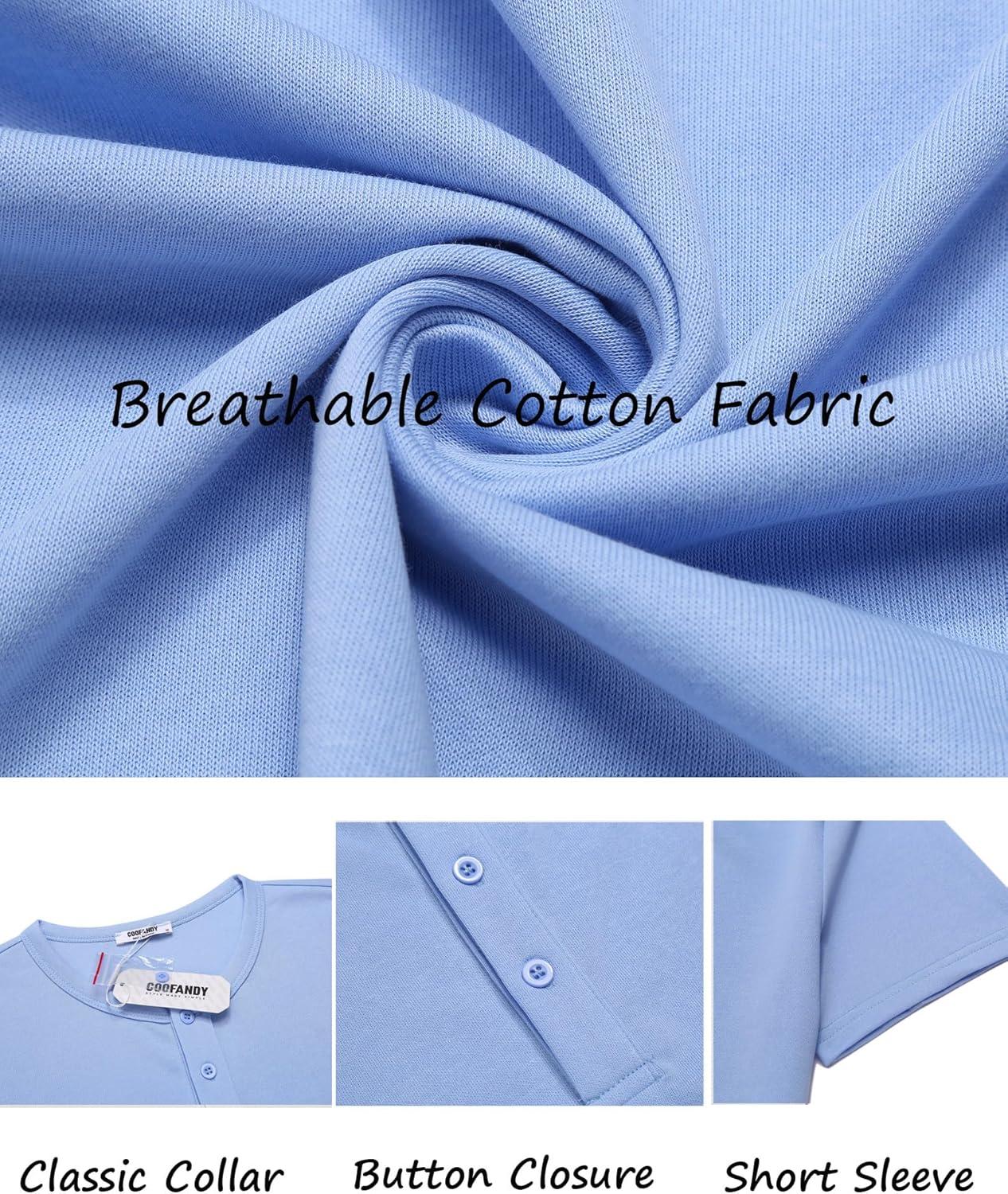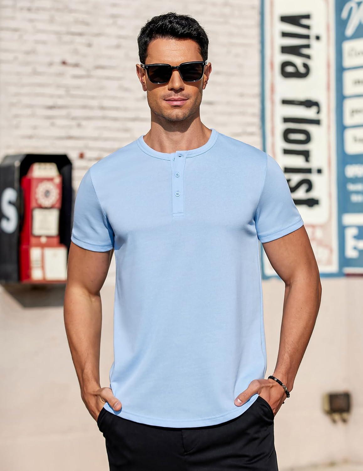 COOFANDY Men's Casual Henley T-Shirts Summer Short Sleeve Cotton Shirts Basic Button Tee Tops(Light Blue)