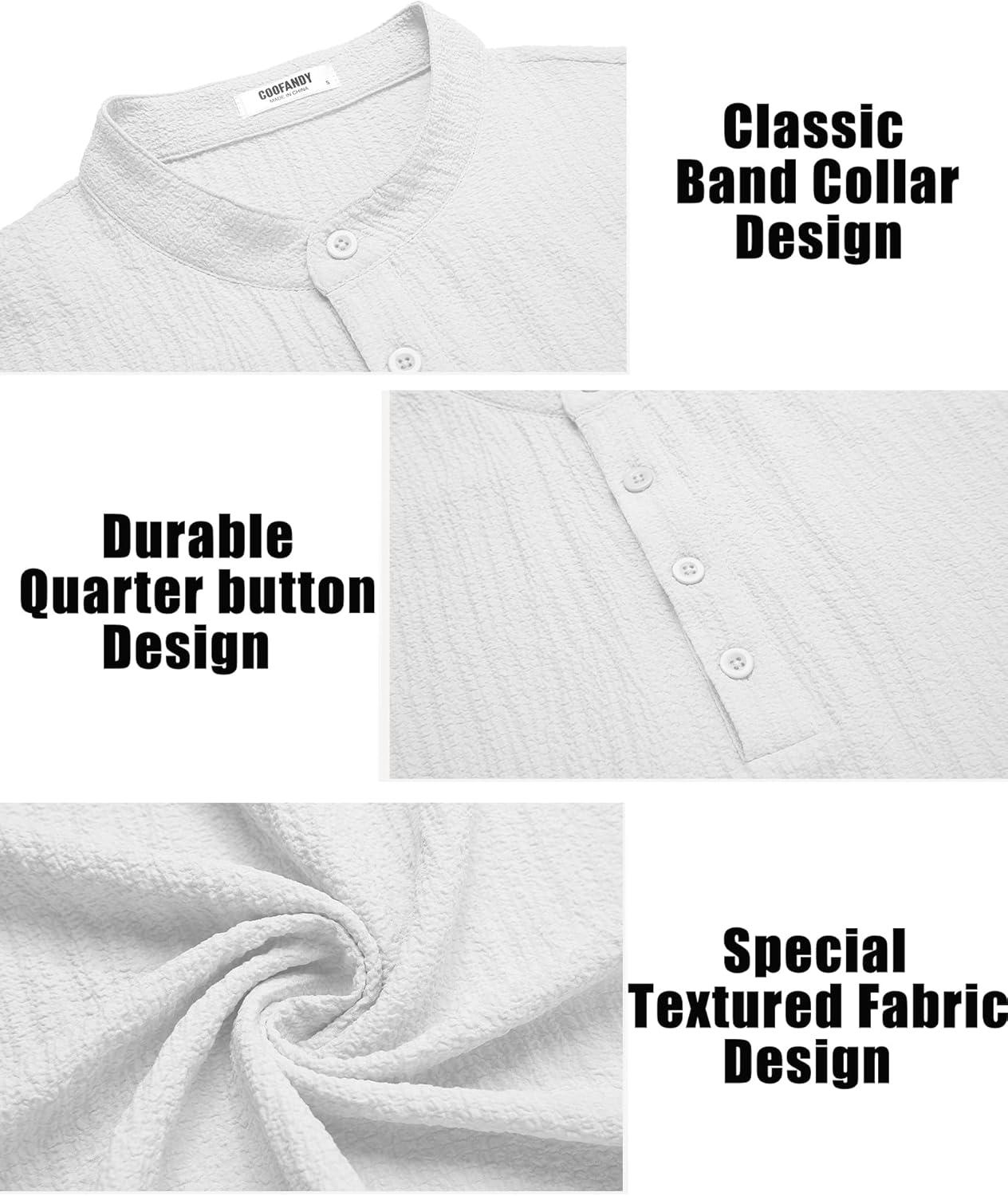 COOFANDY Men's Casual Henley Tee Shirt Band Collar Short Sleeve Summer Beach Hippie T Shirts(White)