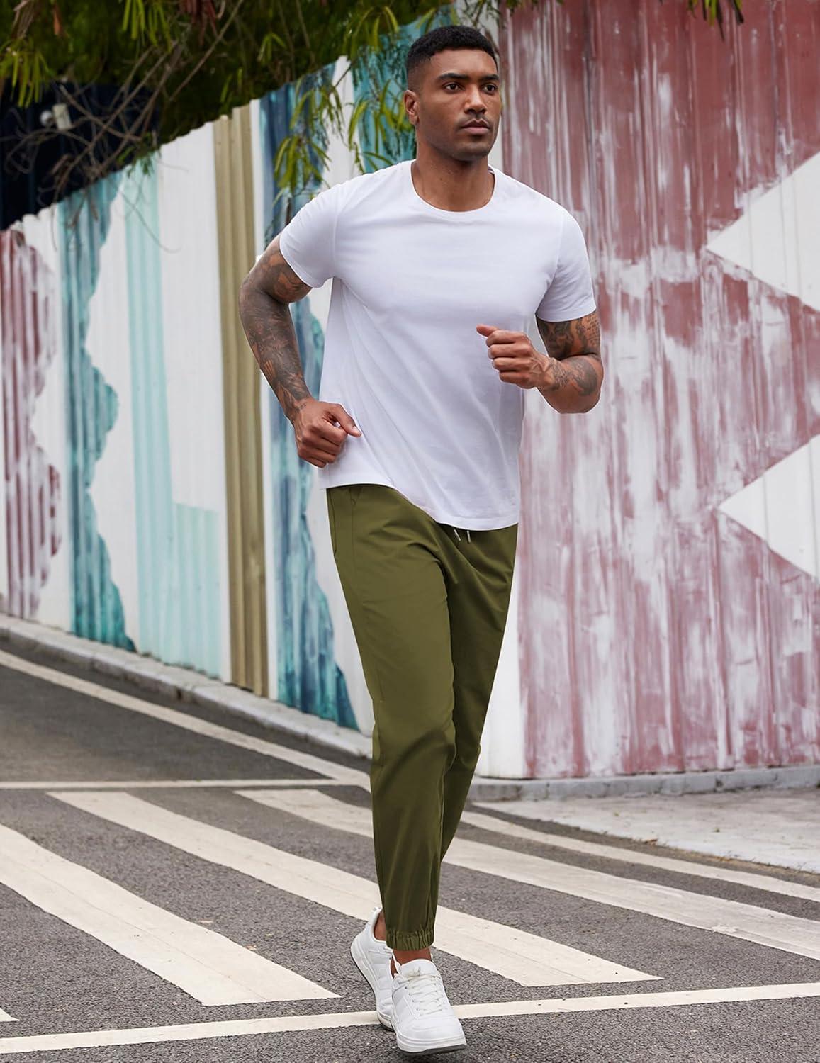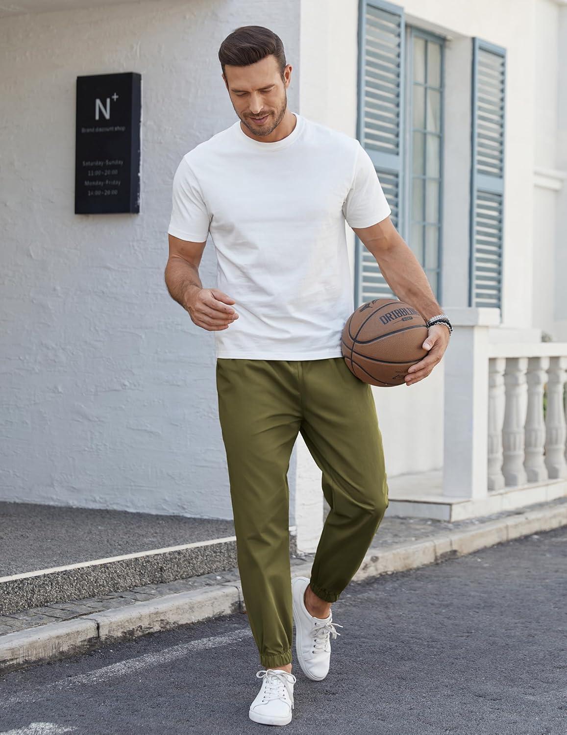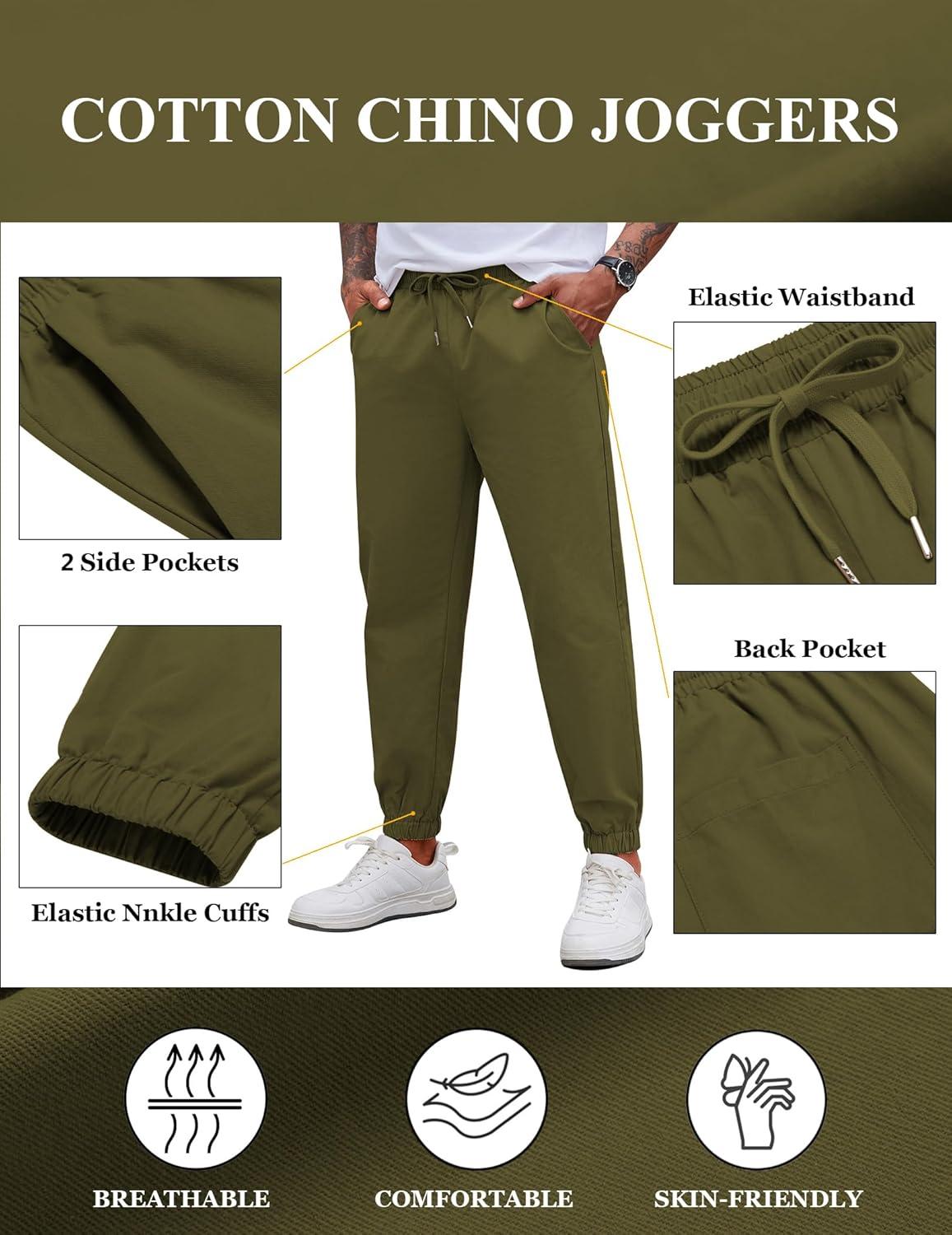 COOFANDY Men's Casual Joggers Pants Cotton Elastic Waist Drawstring Chino Pants Hiking Outdoor Track Sweatpants(Army Green)