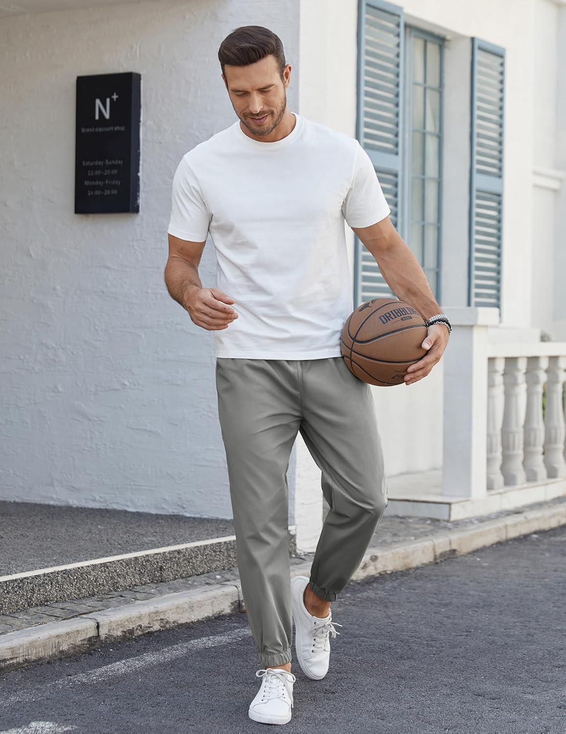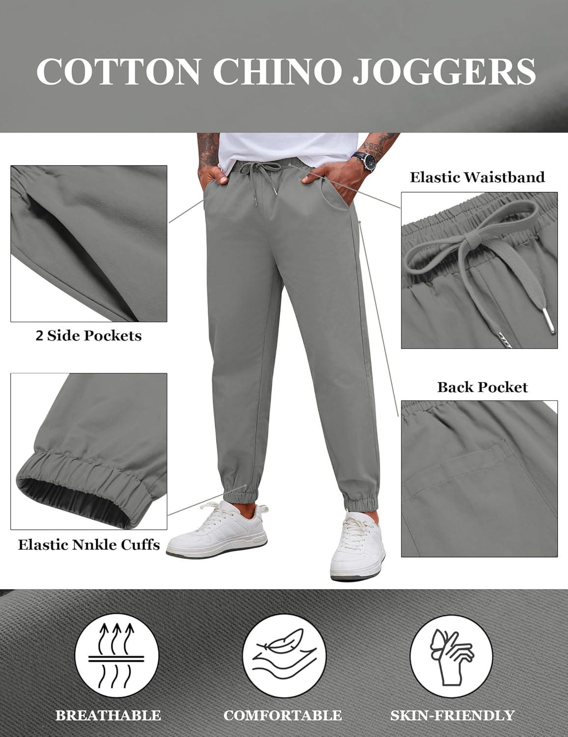 COOFANDY Men's Casual Joggers Pants Cotton Elastic Waist Drawstring Chino Pants Hiking Outdoor Track Sweatpants(Light Grey)
