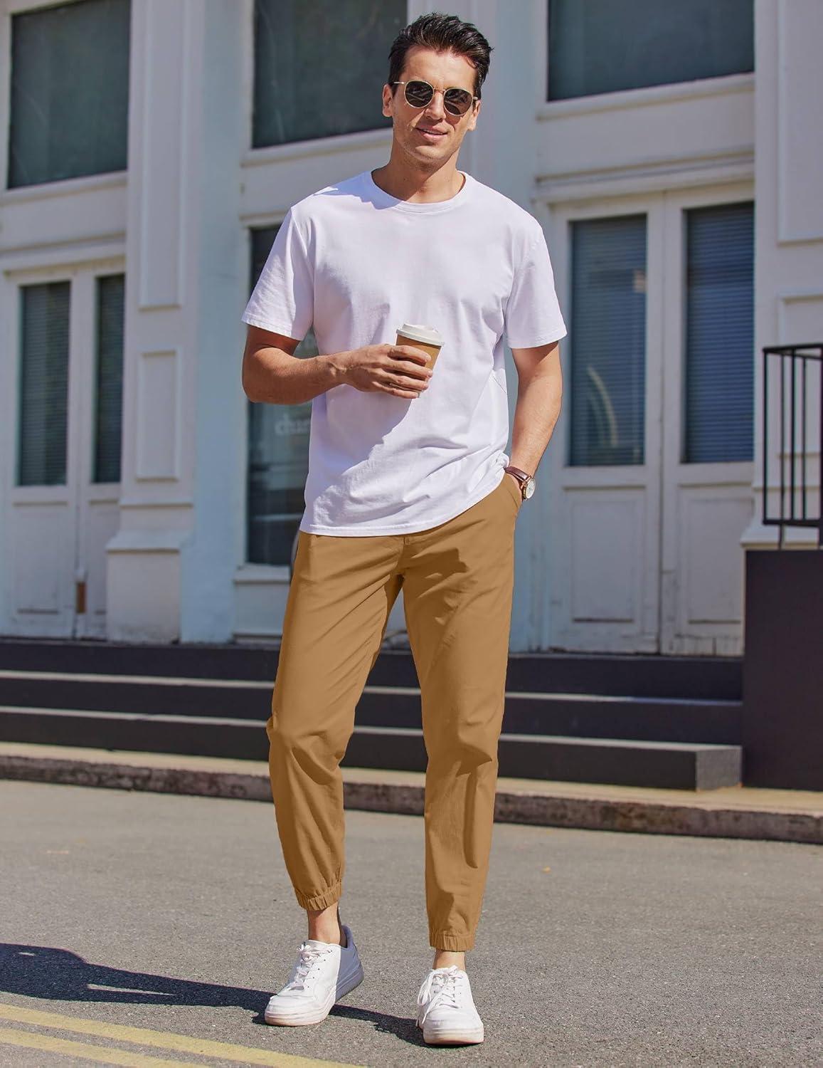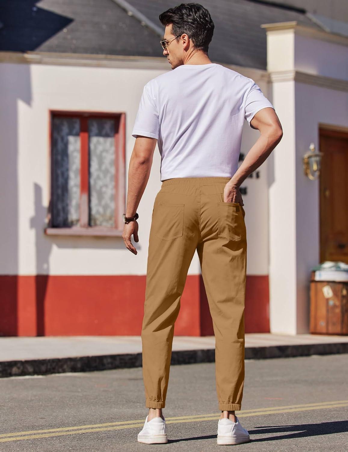 COOFANDY Mens Casual Joggers Pants Elastic Drawstring Chino Cargo Pants Hiking Outdoor Track Sweatpants(Dark Khaki)