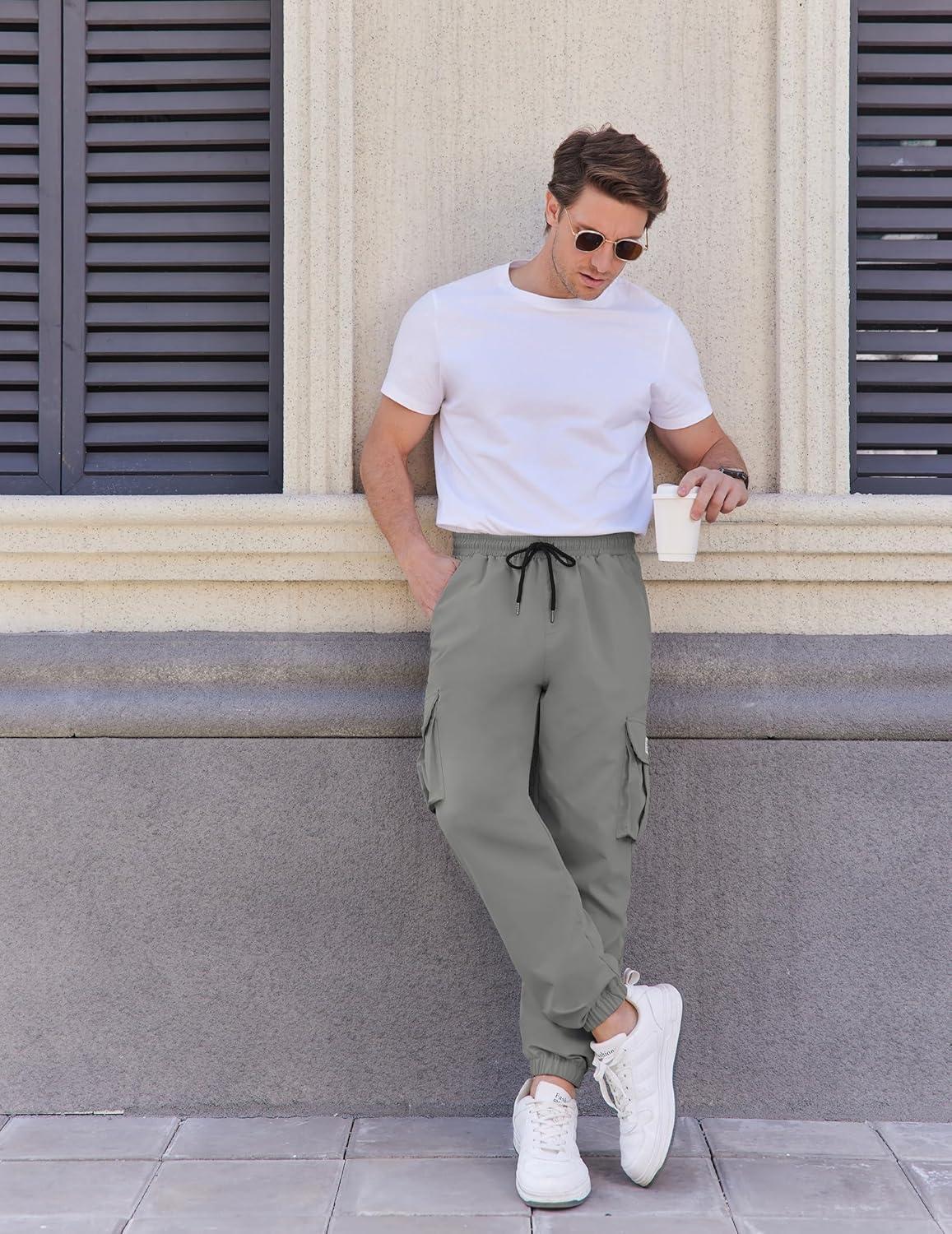 mens tapered cargo pants, mens cargo pants, stretchy cargo pants for men, mens cargo sweatpants, mens elastic waist cargo pants, cargo pants for men relaxed fit, mens cargo joggers, hip hop pants men, khaki pants mens, drawstring pants for men, mens elastic waist pants, lightweight joggers men;