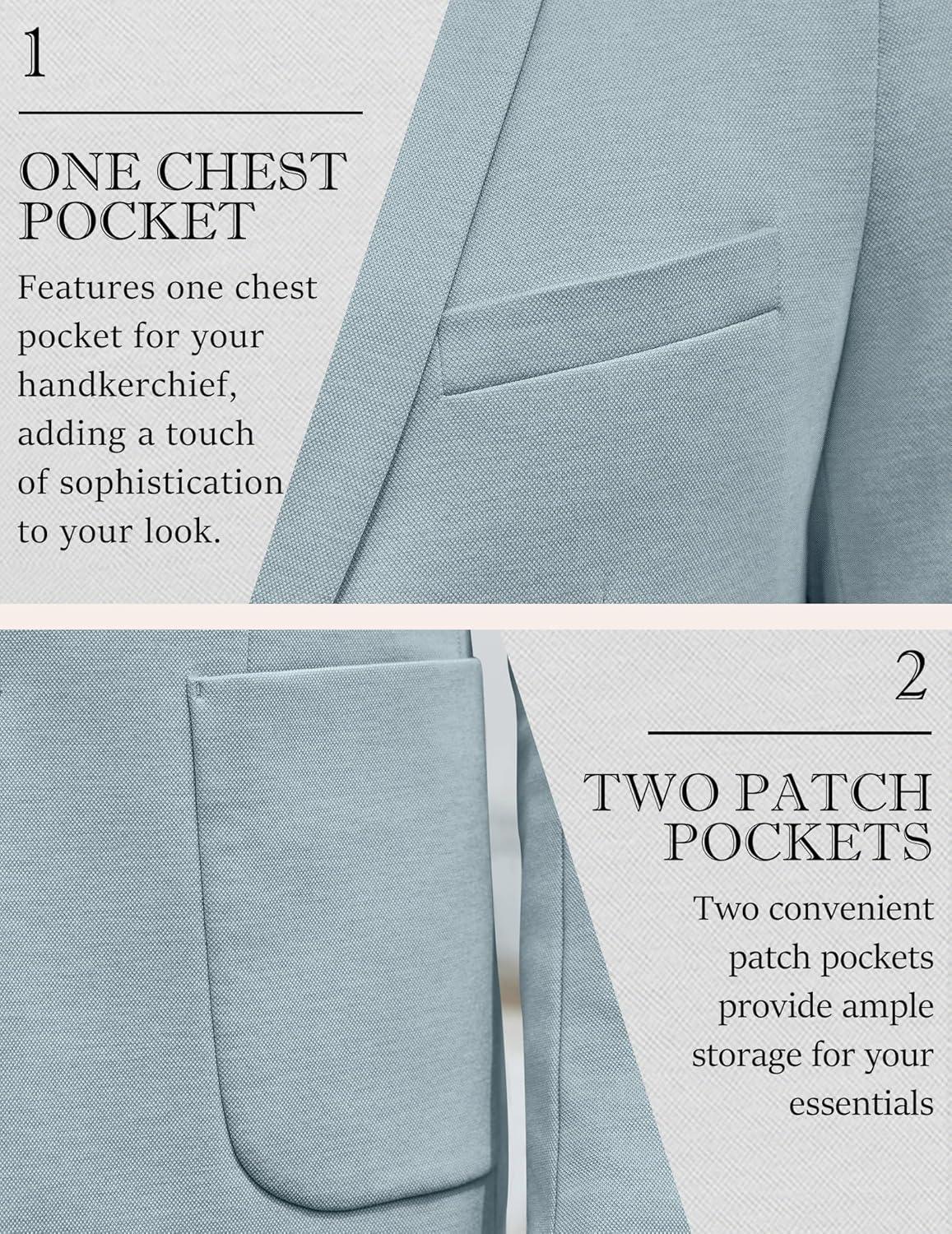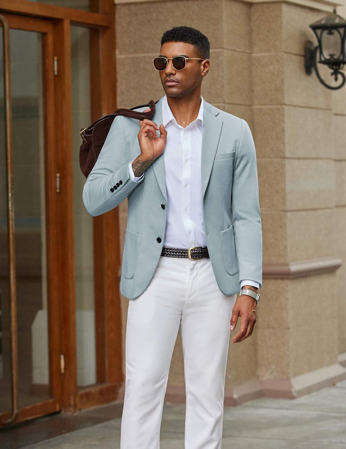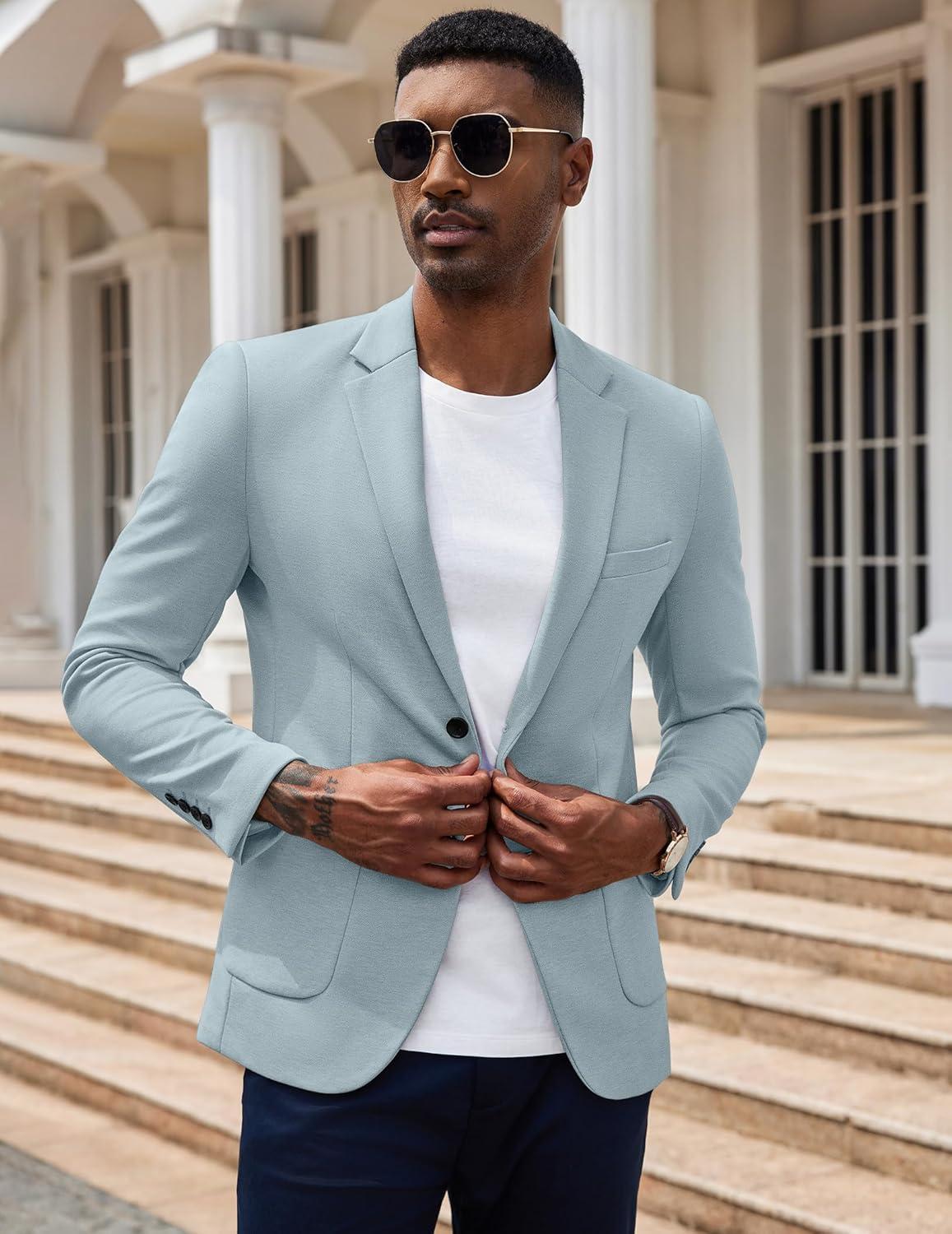 COOFANDY Men’s Casual Knit Blazer Slim Fit Lightweight Sport Coat Stretch Two Button Suit Jacket(Light Blue)