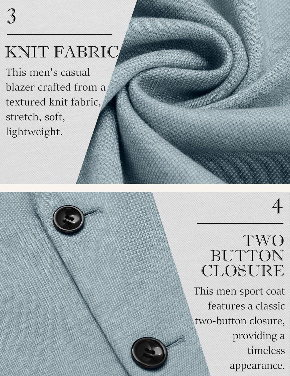 COOFANDY Men's Casual Knit Blazer Slim Fit Lightweight Sport Coat Stretch Two Button Suit Jacket(Light Blue)