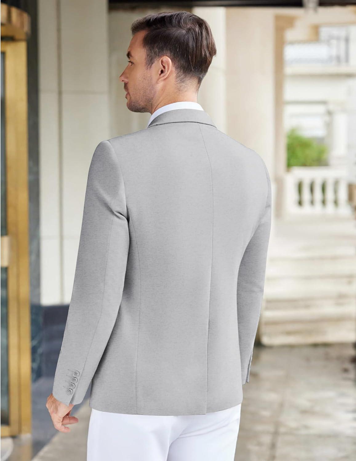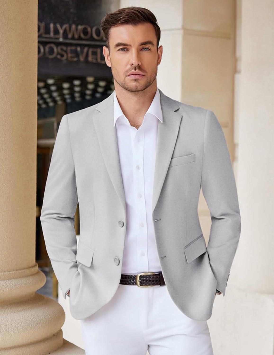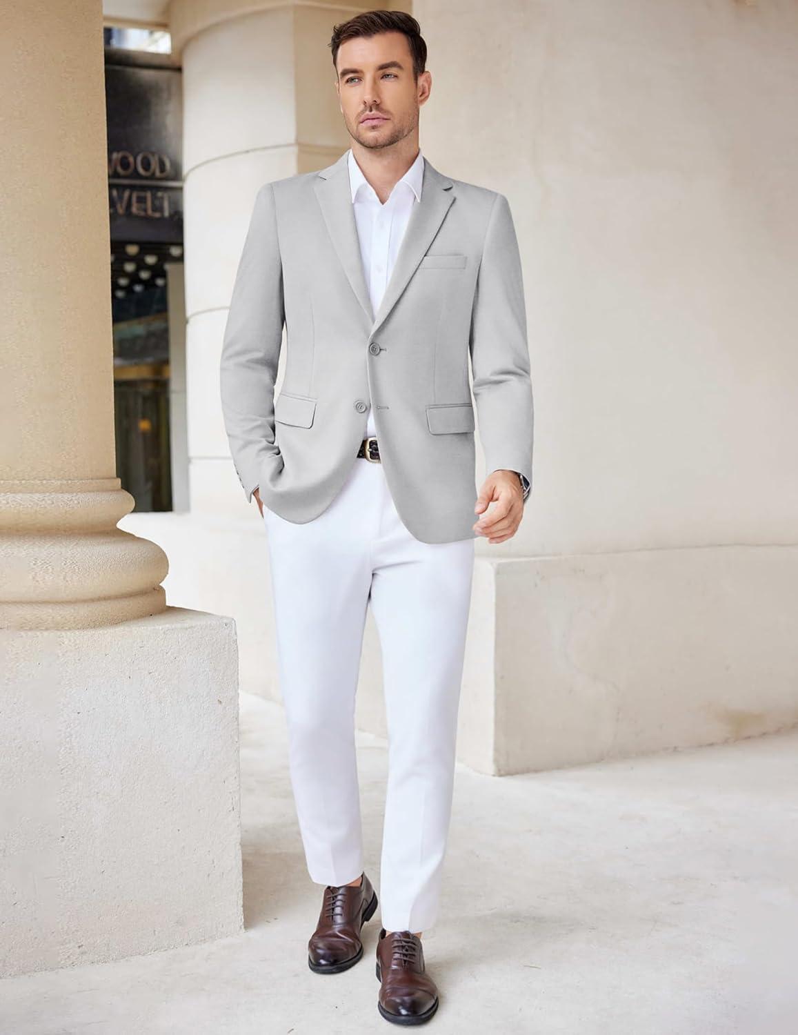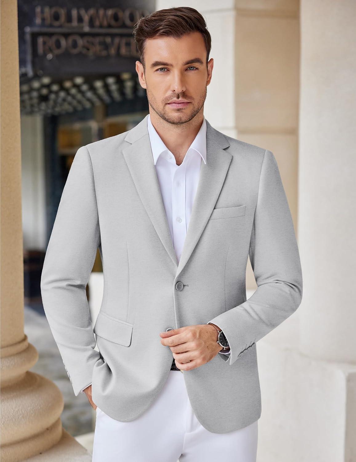 COOFANDY Men's Casual Knit Blazer Stretch Slim Fit Sport Coat Two Button Lightweight Suit Jackets(Light Heather Grey)