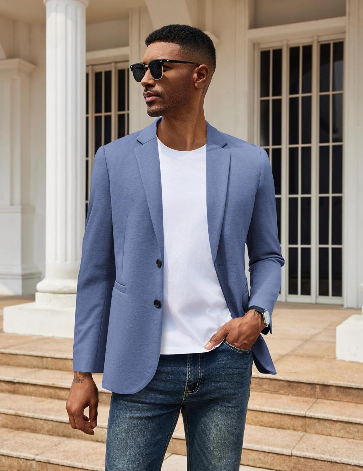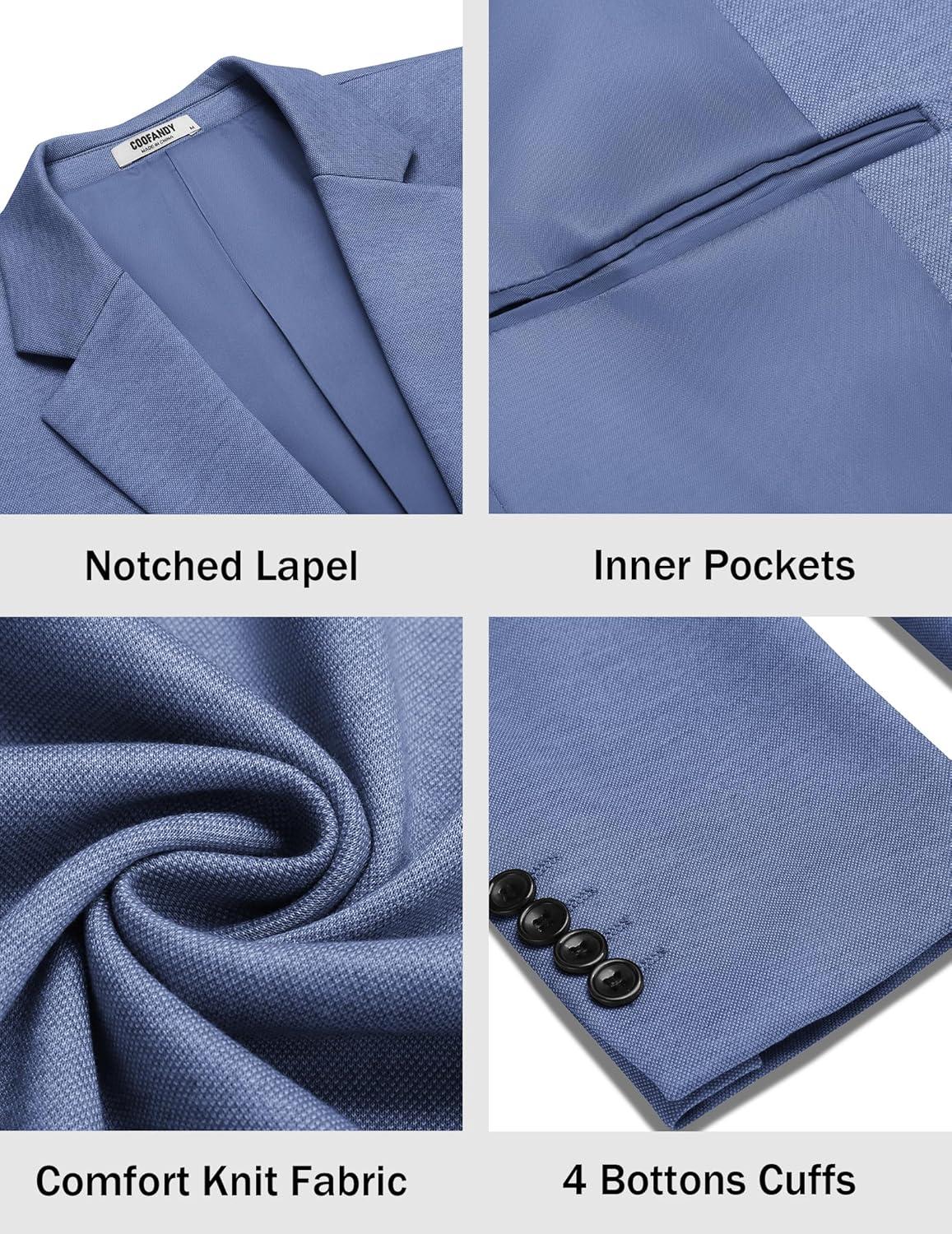 COOFANDY Men's Casual Knit Blazer Two Button Lightweight Sport Coats Suit Jacket(Blue)