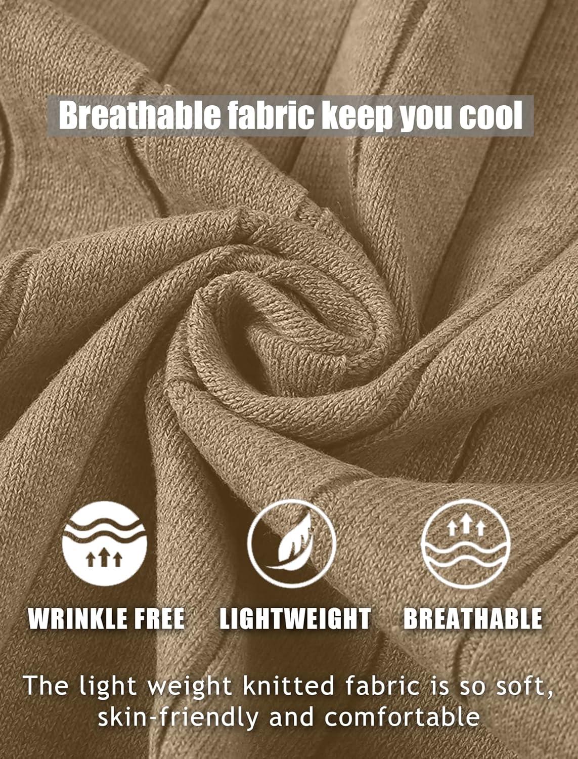 COOFANDY Men’s Casual Knit Polo Shirts Long Sleeve Button Down Sweater Polo Ribbed Cardigan Sweater with Pocket(Light Khaki)