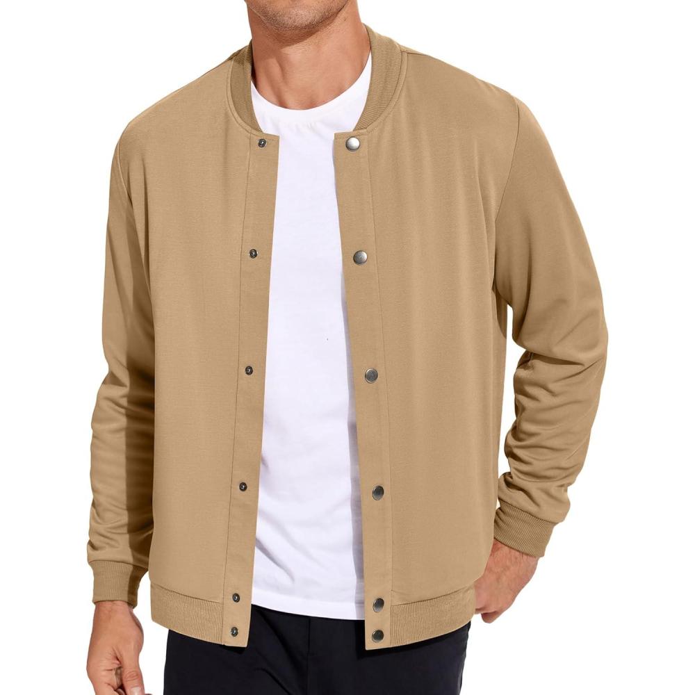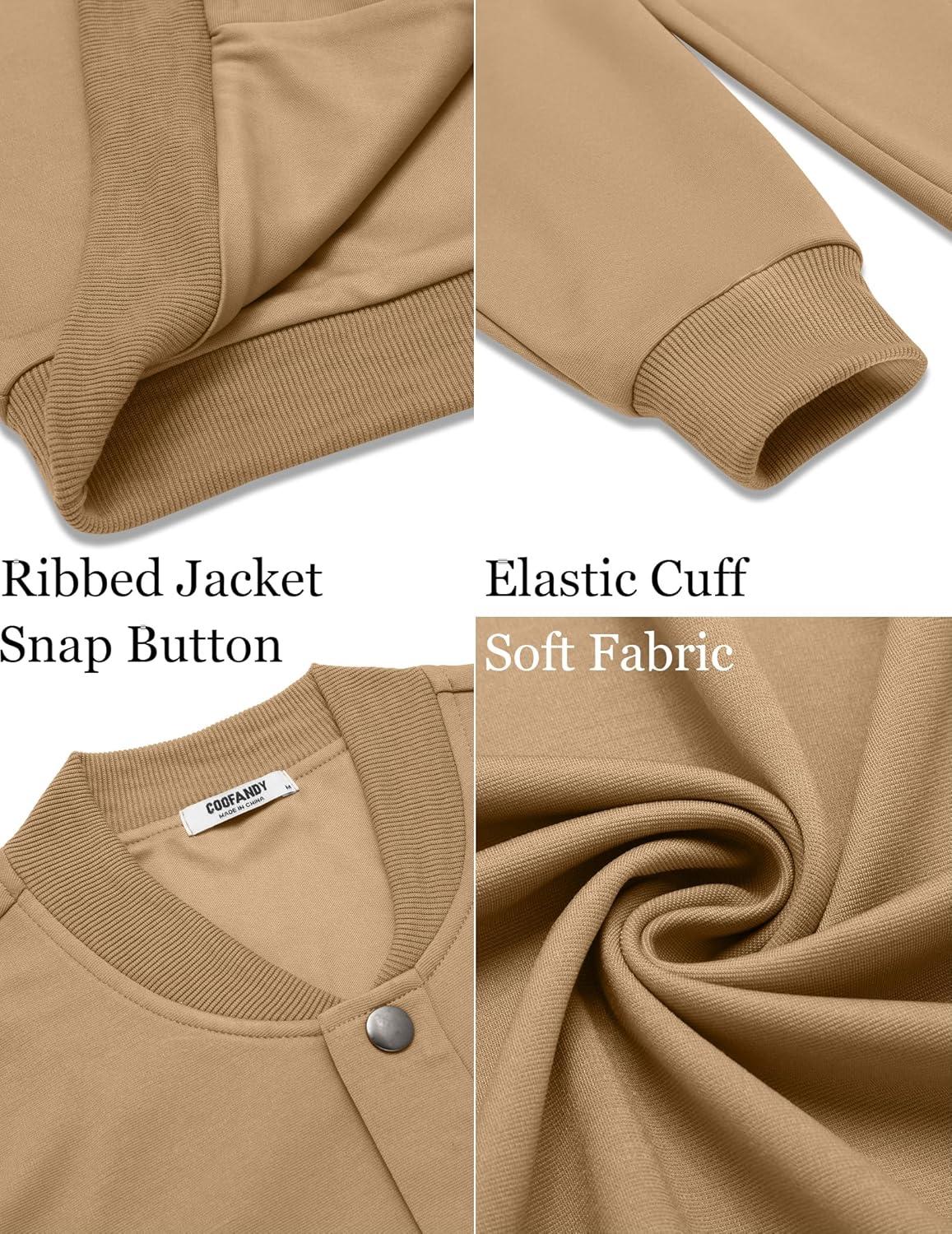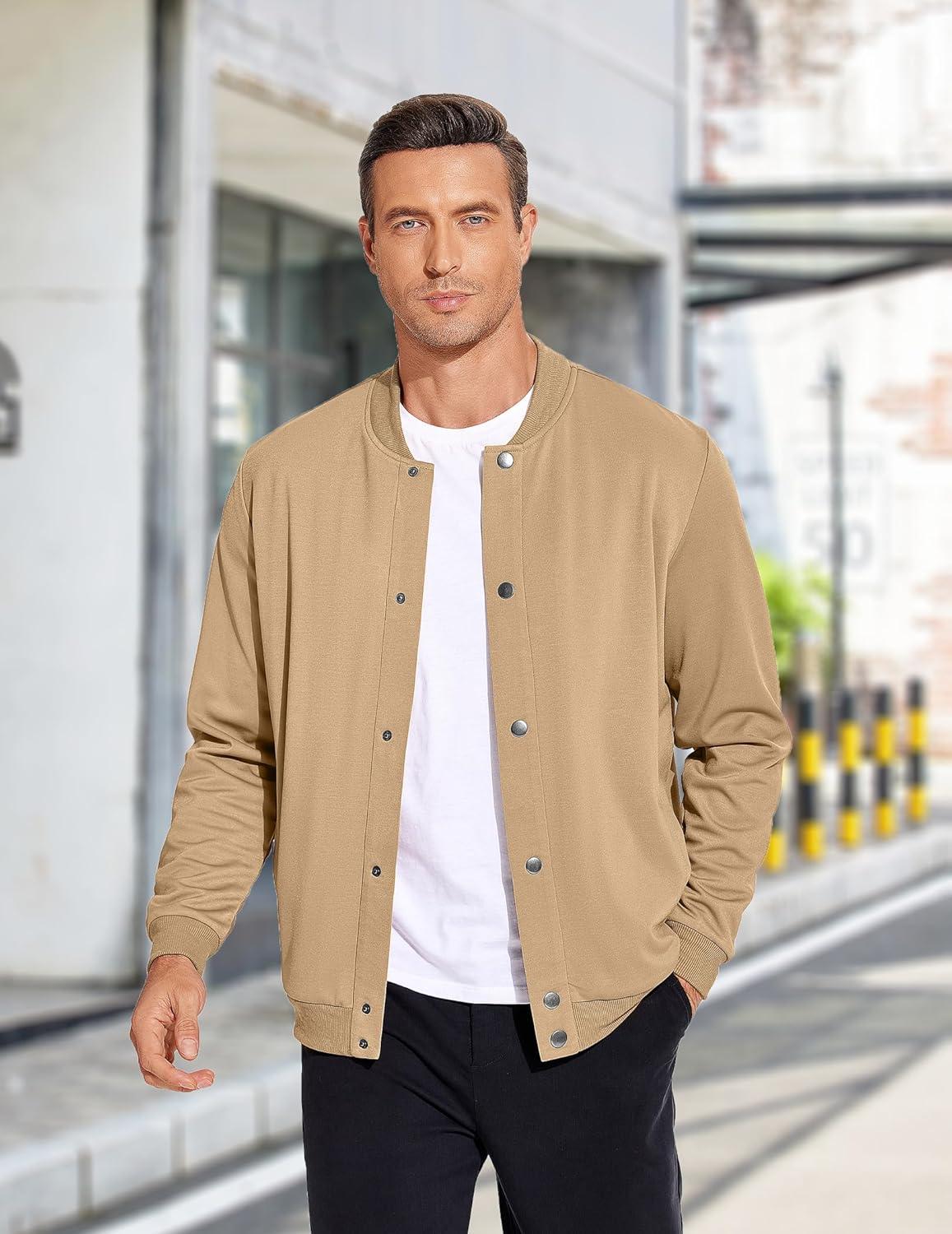COOFANDY Men's Casual Lightweight Jacket Baseball Letterman Snap Button Jacket(Khaki)