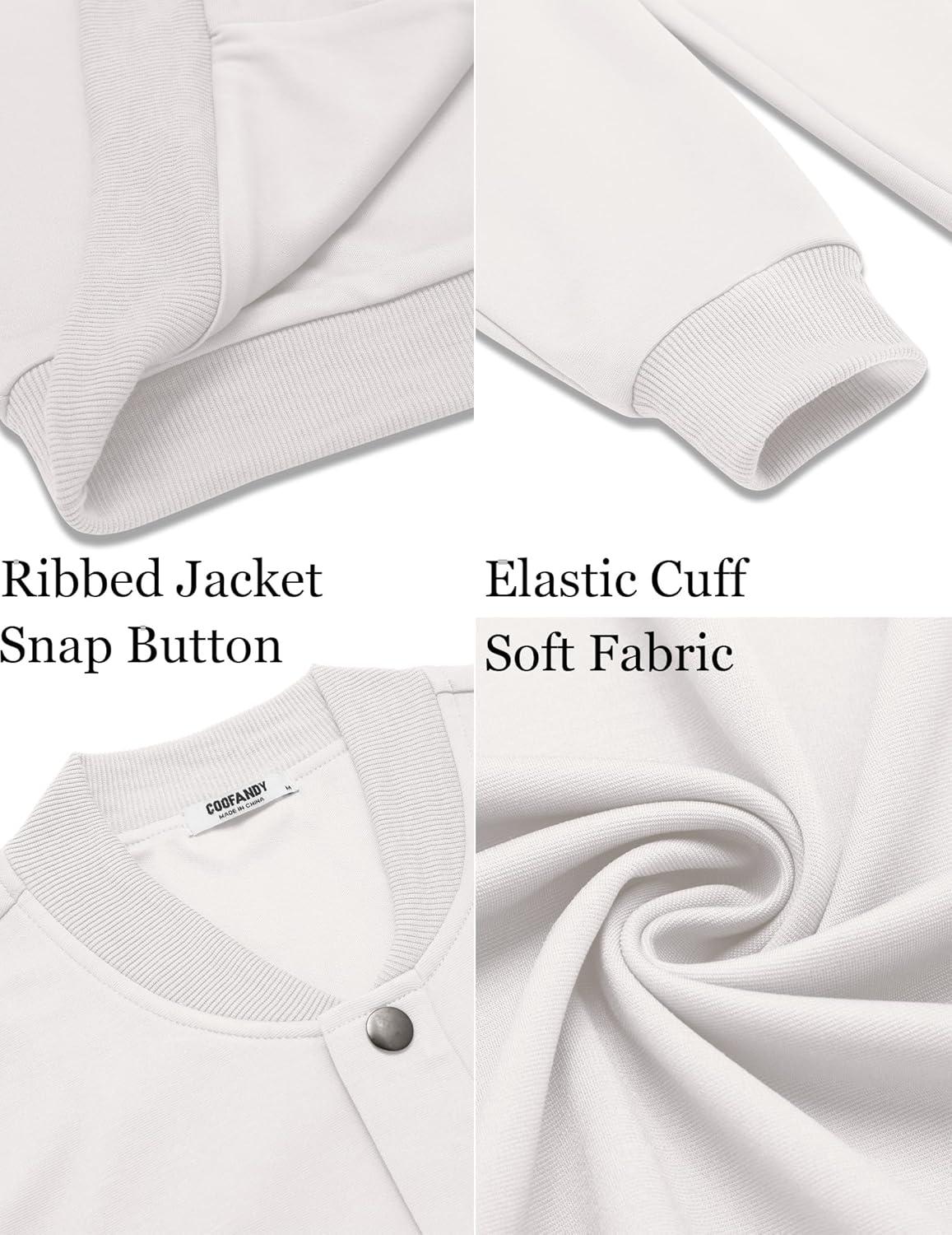 COOFANDY Men's Casual Lightweight Jacket Baseball Letterman Snap Button Jacket(White)