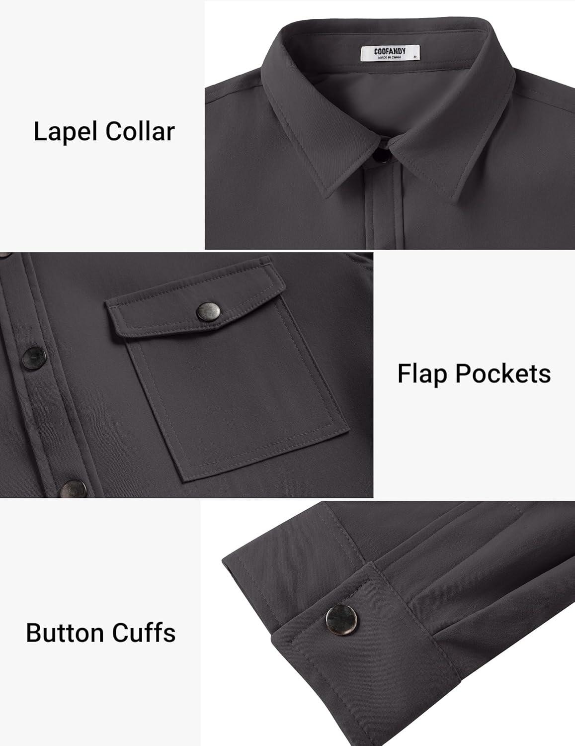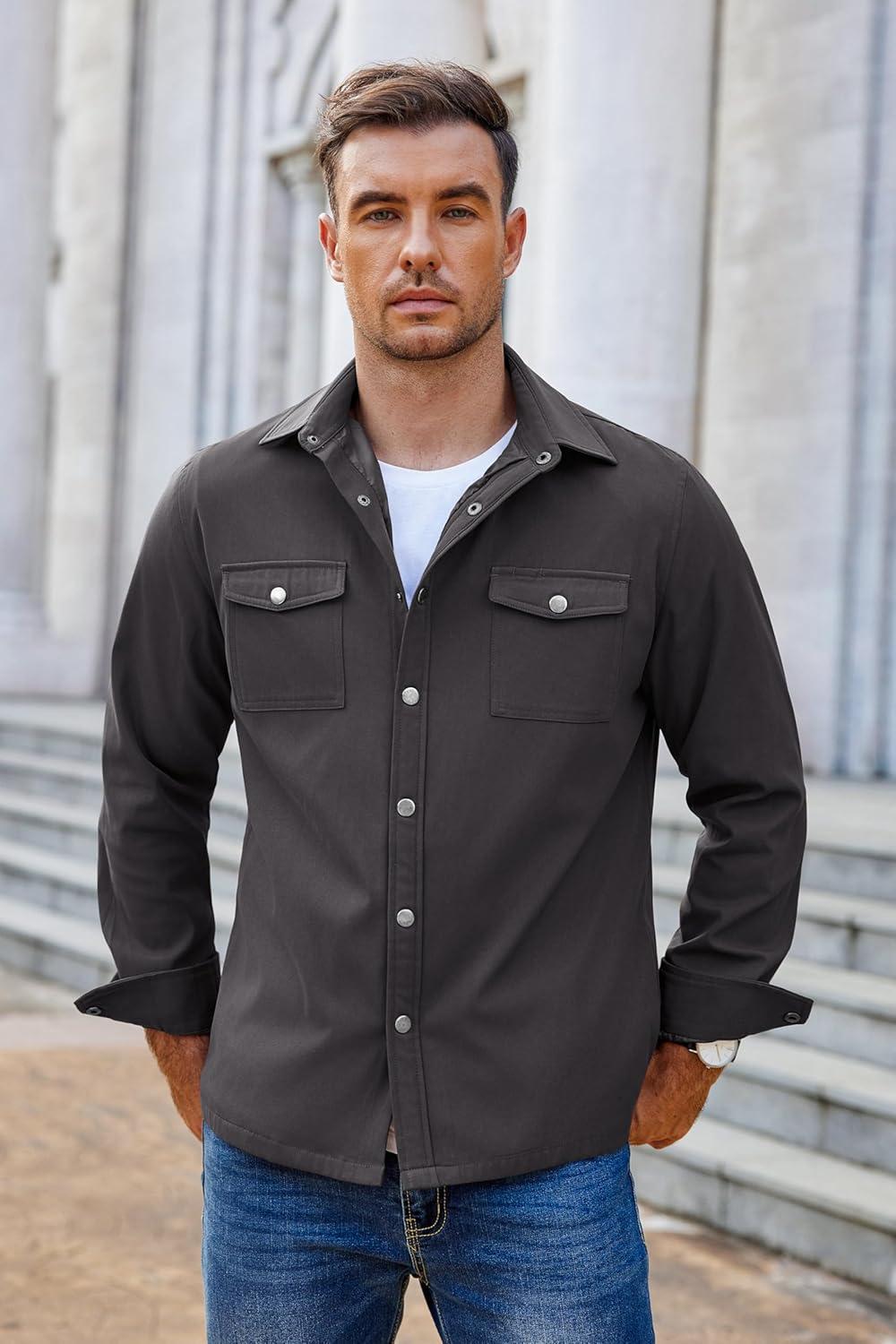 COOFANDY Men's Casual Lightweight Shirt Jacket Work Shacket Jackets Military Button Down Overshirt With Flap Pockets(Dark Grey)