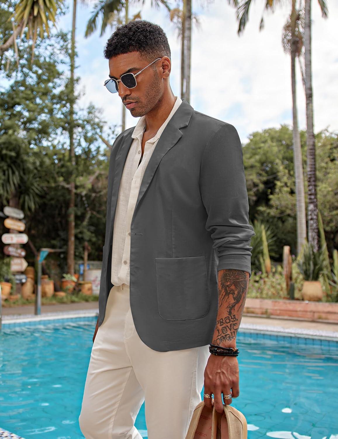 COOFANDY Men's Casual Linen Blazer Lightweight Regular Fit Sport Coat One Button Suit Jacket(Dark Grey)