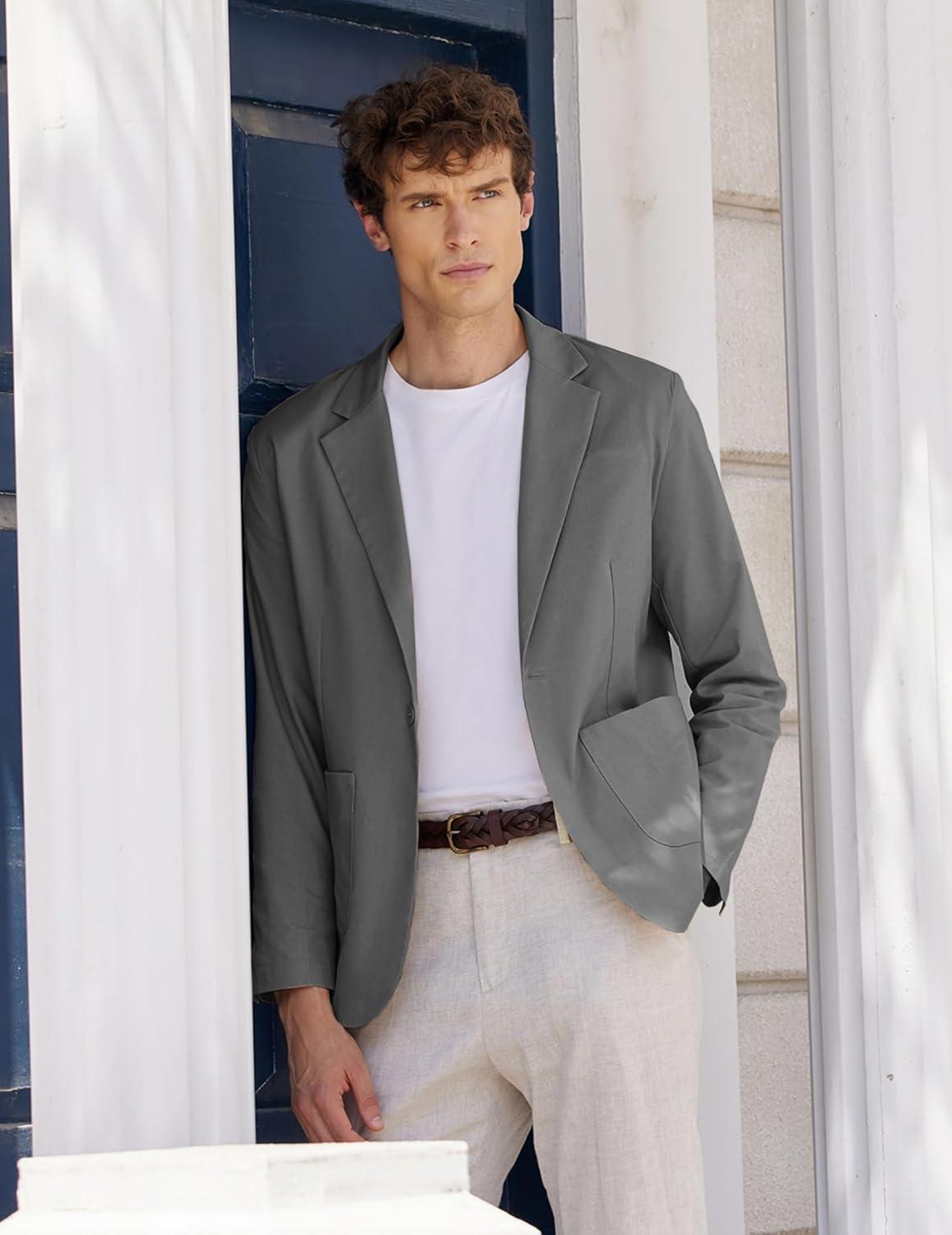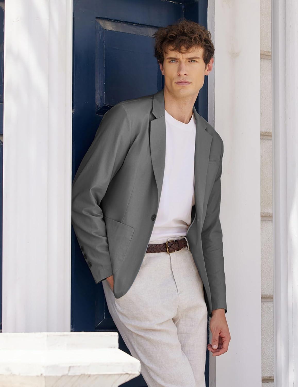 COOFANDY Men’s Casual Linen Blazer Lightweight Regular Fit Sport Coat One Button Suit Jacket(Light Grey)