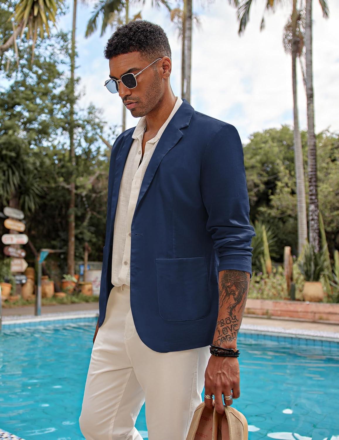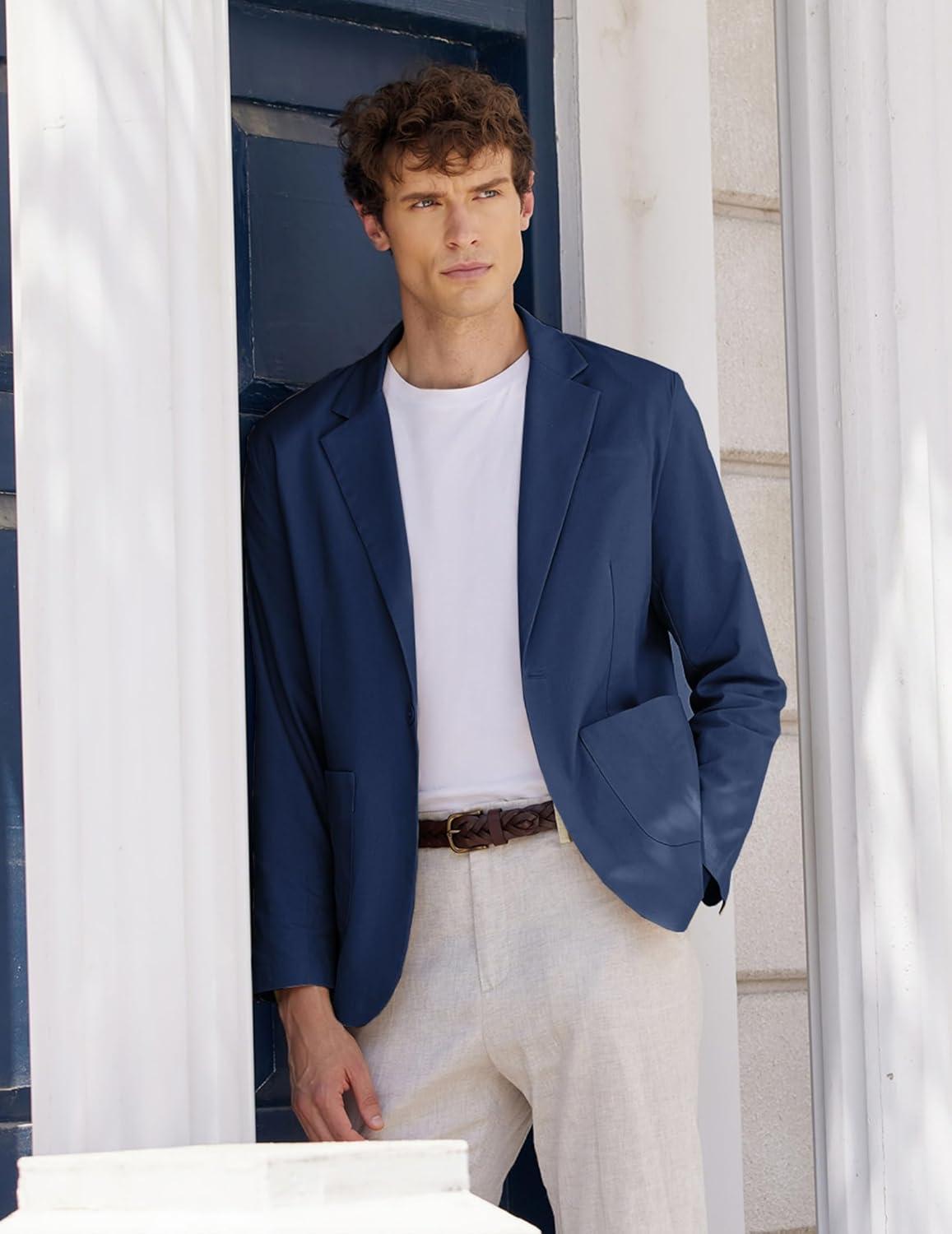 COOFANDY Men’s Casual Linen Blazer Lightweight Regular Fit Sport Coat One Button Suit Jacket(Navy Blue)