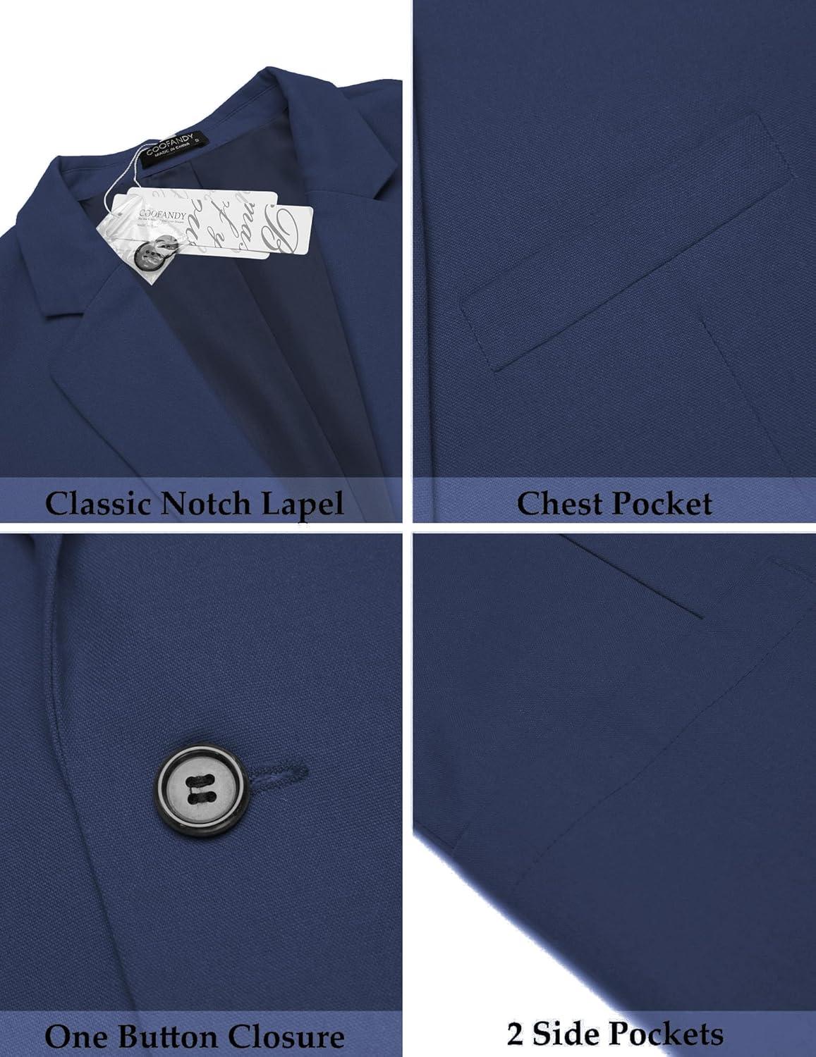 COOFANDY Men's Casual Linen Blazer Lightweight Regular Fit Sport Coat One Button Suit Jacket(Navy Blue)