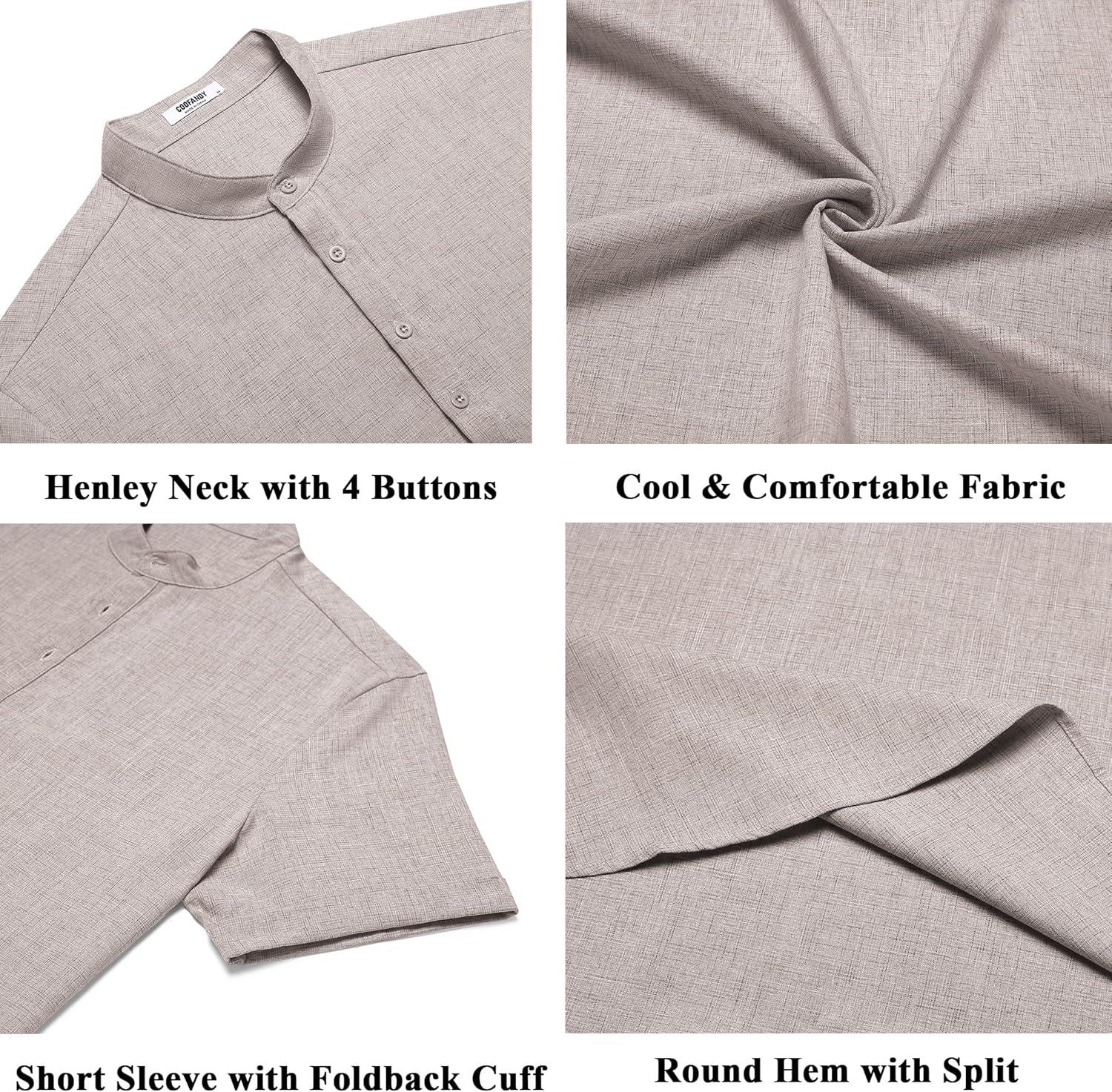 COOFANDY Men's Casual Linen Henley Shirts Short Sleeve Band Collar Summer Beach Vacation T-Shirts(Stone)