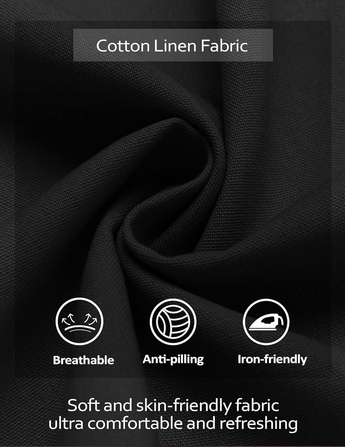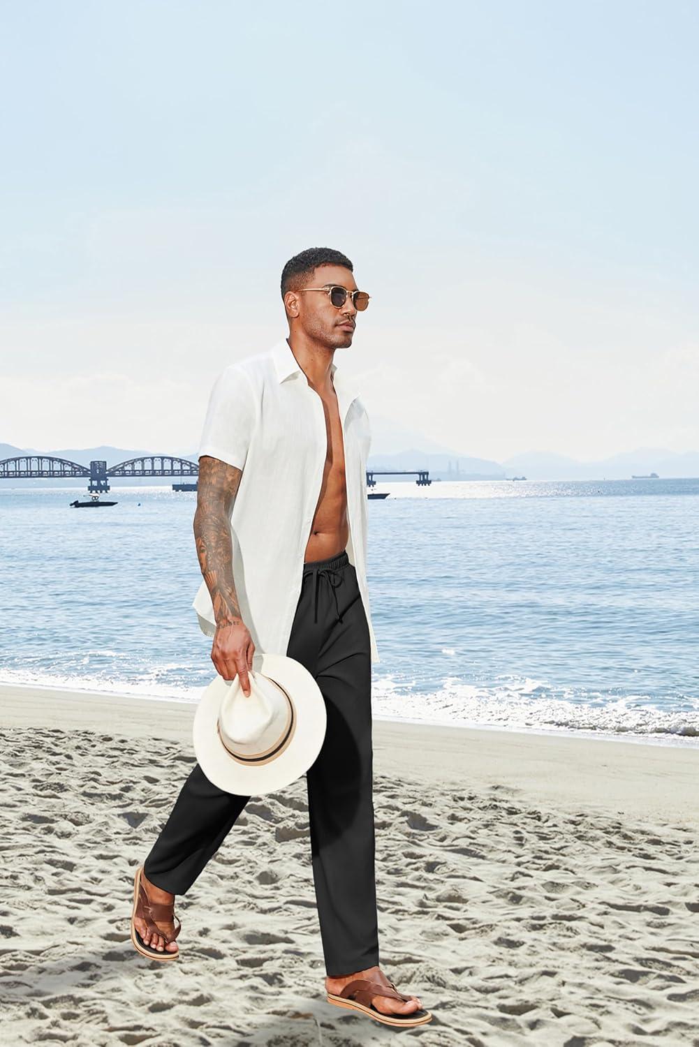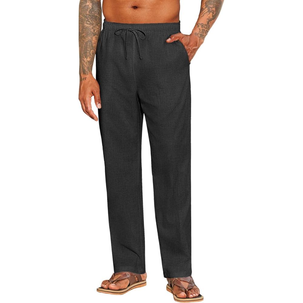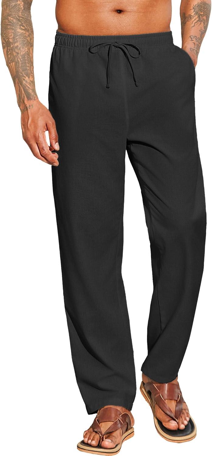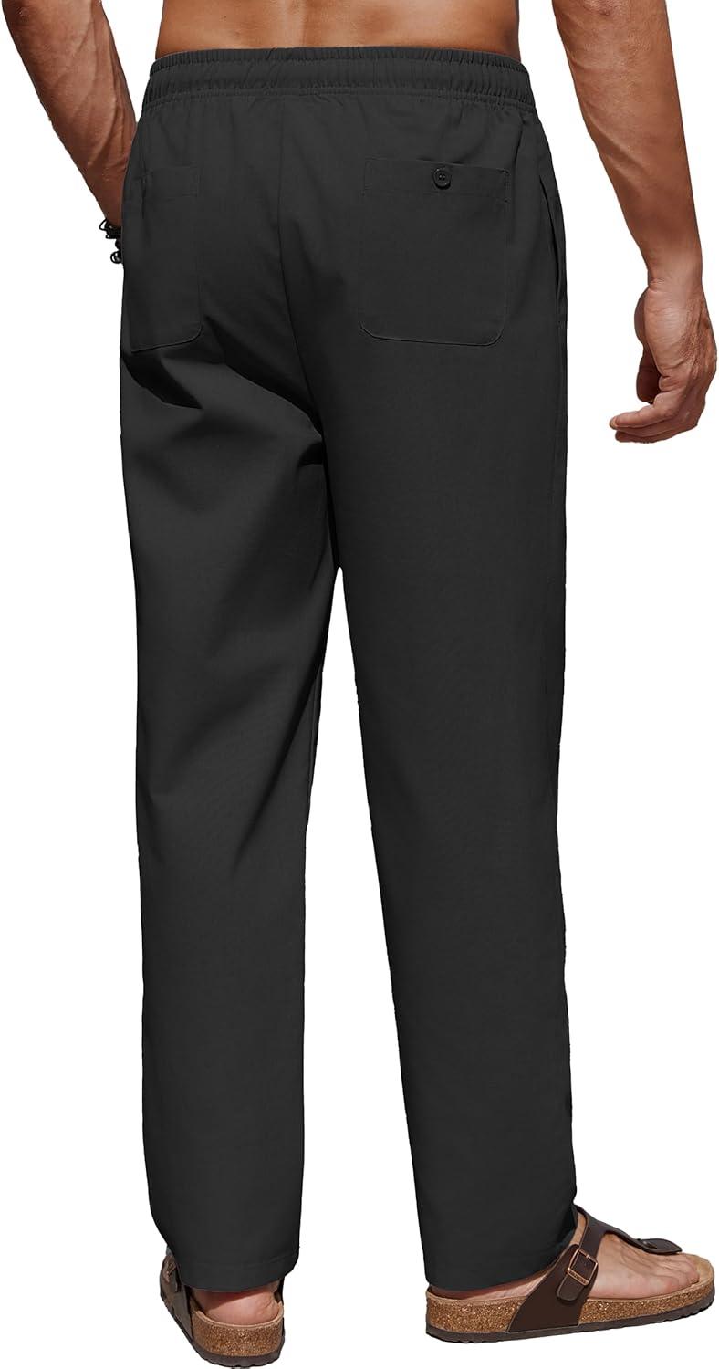 COOFANDY Men's Casual Linen Pants Elastic Waist Drawstring Beach Summer Pants Lightweight Linen Trousers(Black)