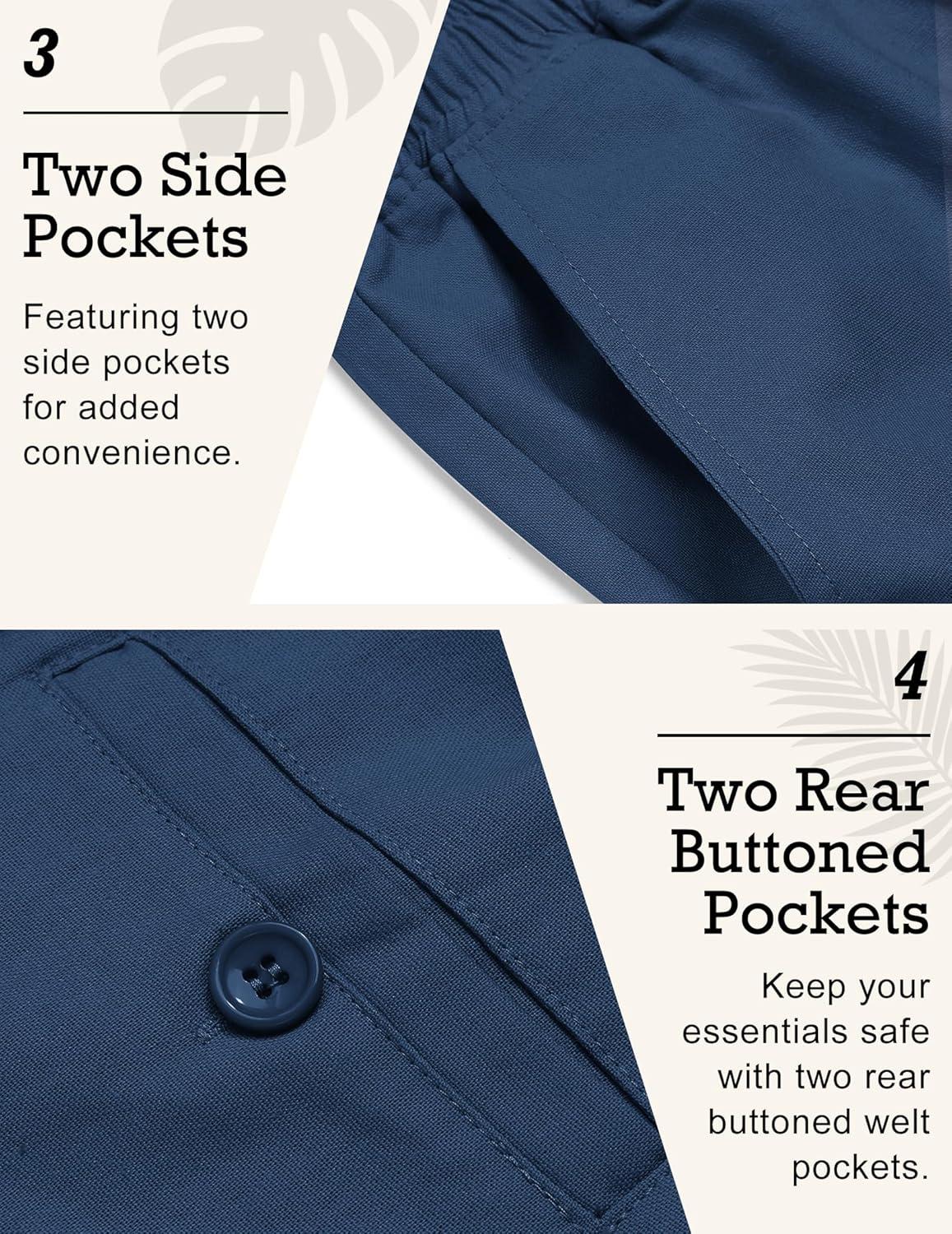 COOFANDY Men's Casual Linen Pants Elastic Waist Drawstring Beach Summer Pants Lightweight Linen Trousers(Blue)