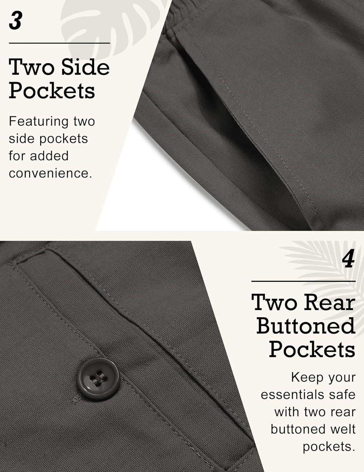 COOFANDY Men's Casual Linen Pants Elastic Waist Drawstring Beach Summer Pants Lightweight Linen Trousers(Dark Grey)