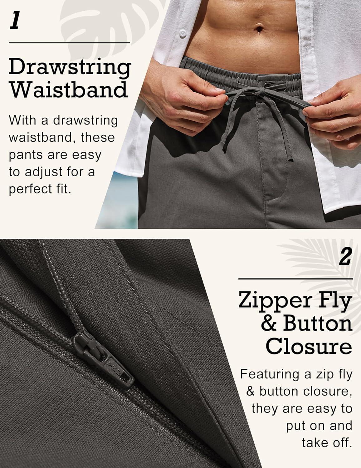COOFANDY Men’s Casual Linen Pants Elastic Waist Drawstring Beach Summer Pants Lightweight Linen Trousers(Dark Grey)
