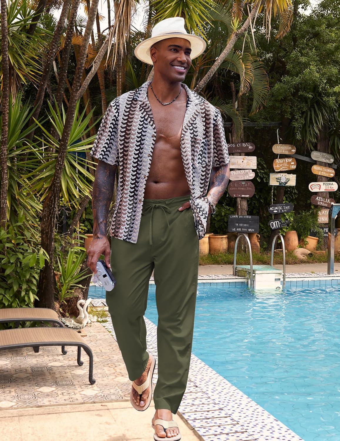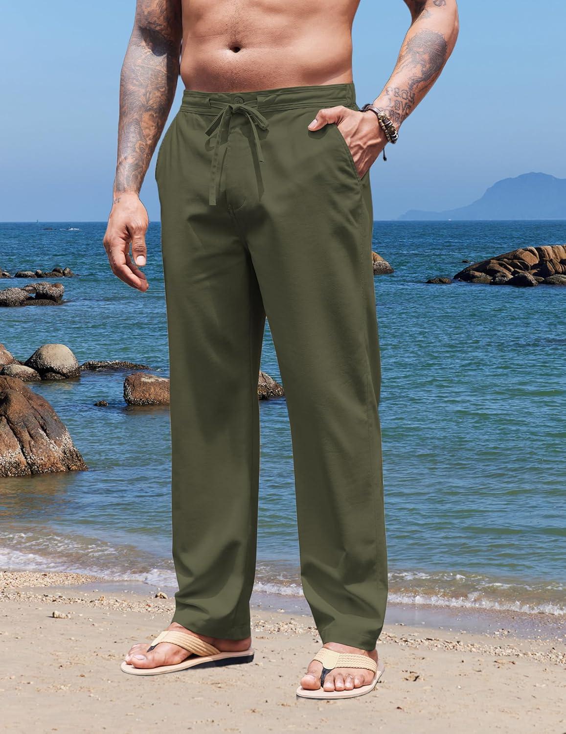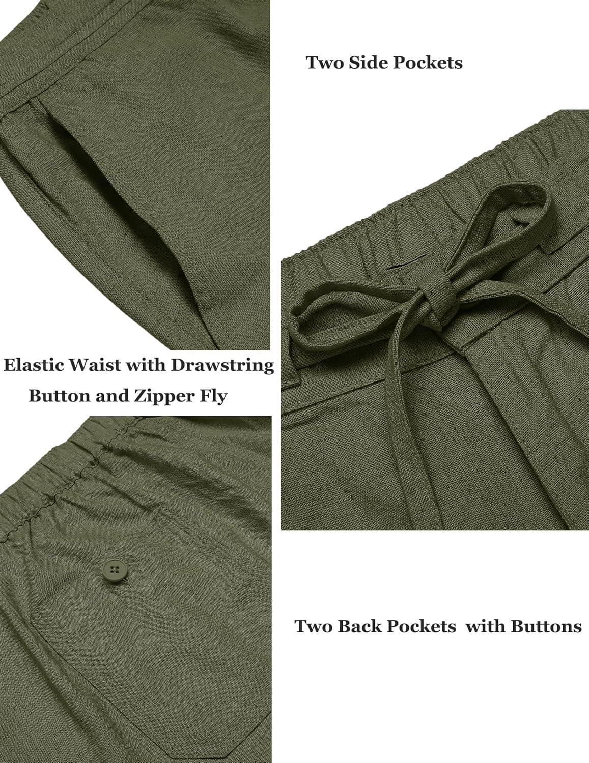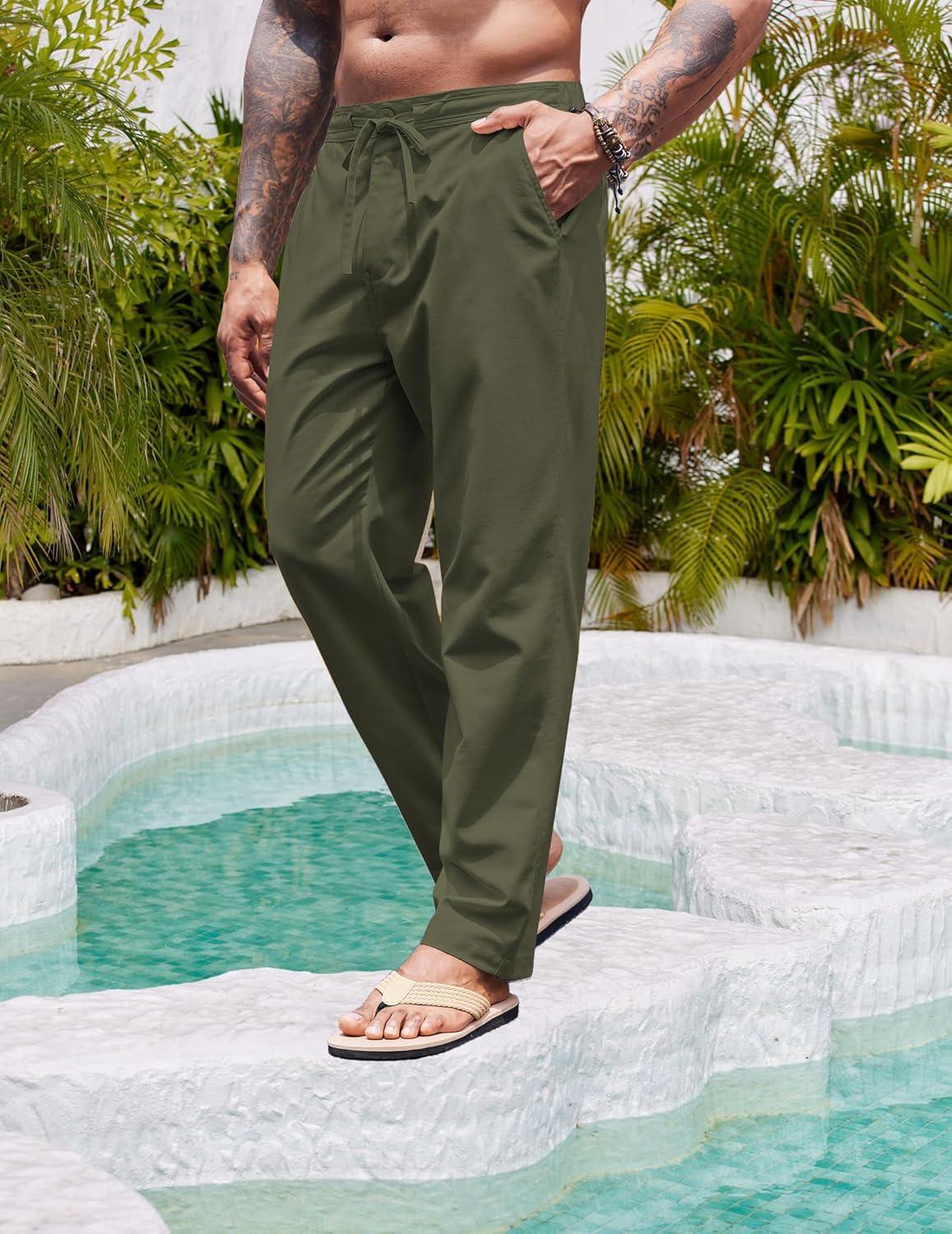 COOFANDY Men's Casual Linen Pants Elastic Waist Drawstring Yoga Beach Pants Lightweight Loose Fit Trousers with Pockets(Army Green)