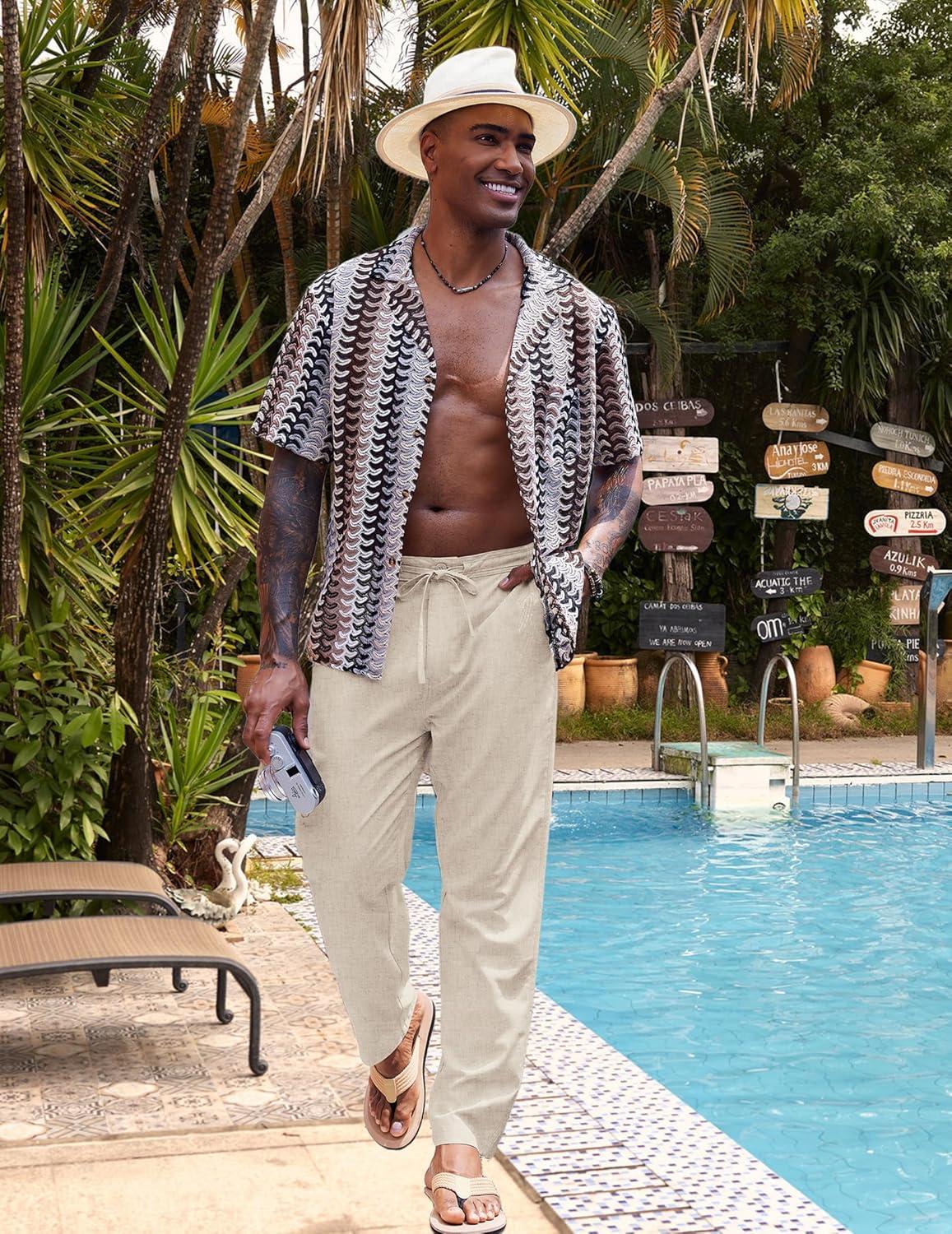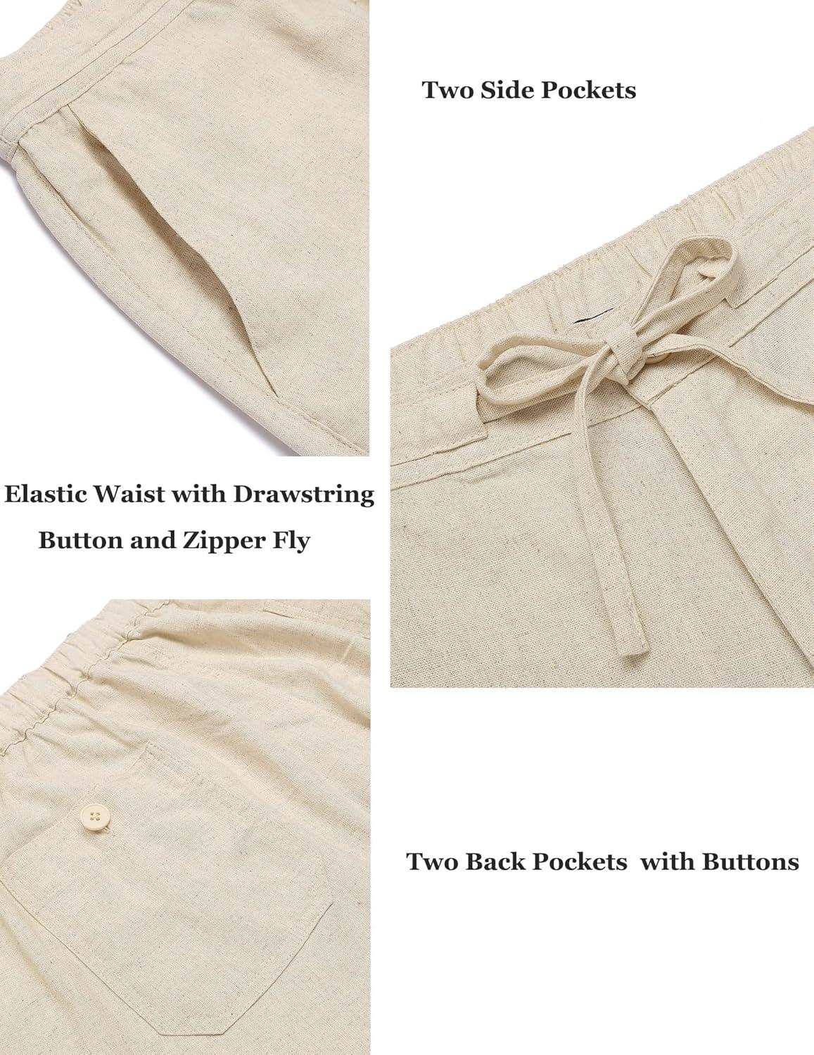 COOFANDY Men’s Casual Linen Pants Elastic Waist Drawstring Yoga Beach Pants Lightweight Loose Fit Trousers with Pockets(Beige)