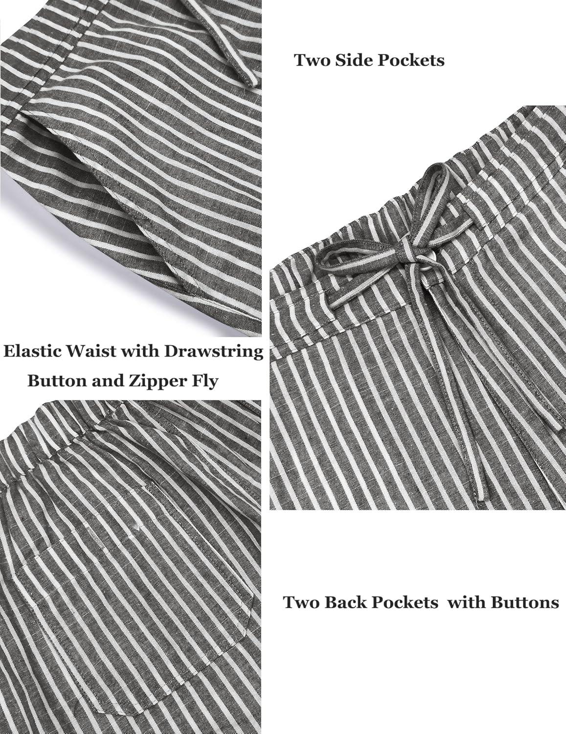 imageCOOFANDY Mens Casual Linen Pants Elastic Waist Drawstring Yoga Beach Pants Lightweight Loose Fit Trousers with PocketsBlack  White Stripe