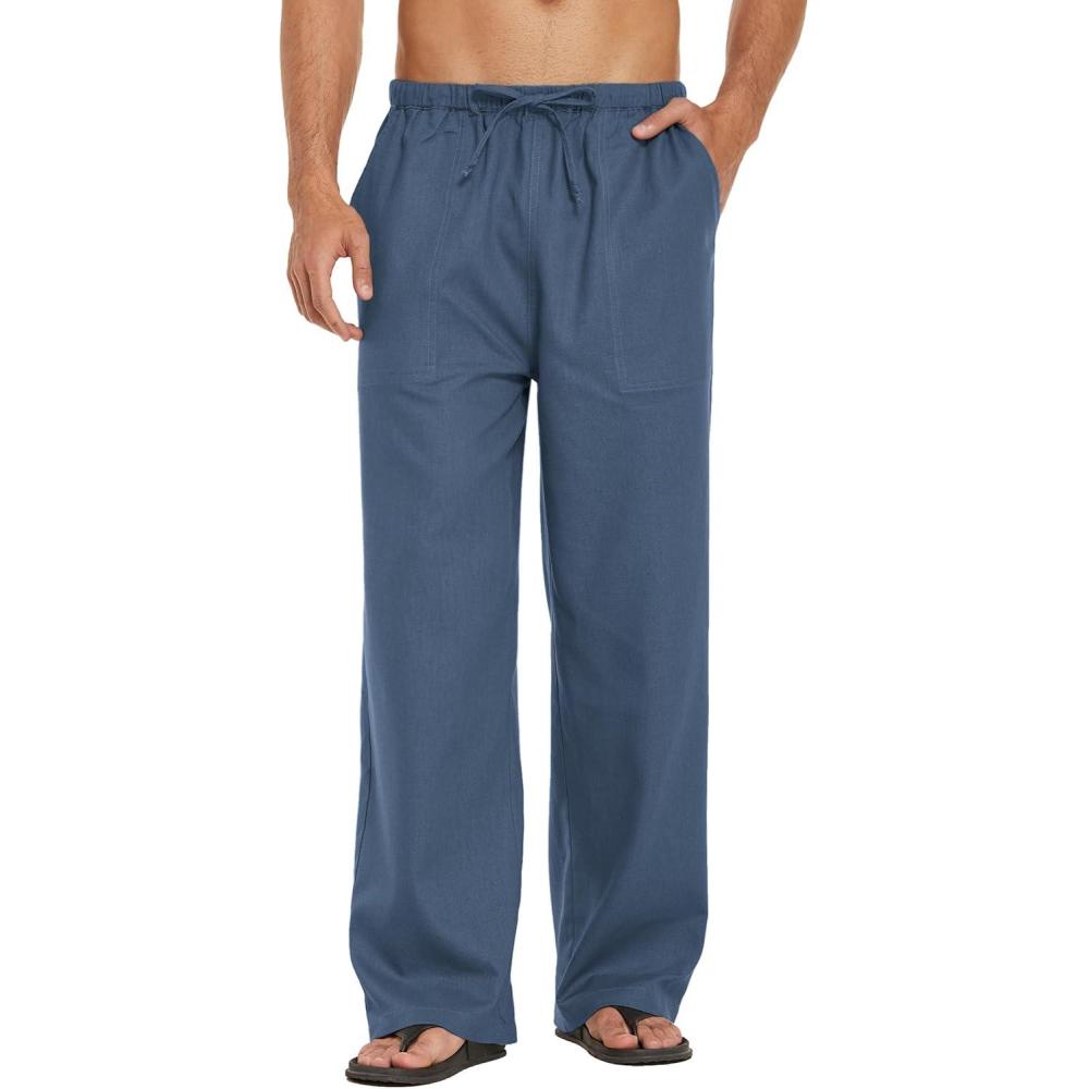 COOFANDY Mens Casual Linen Pants Elastic Waist Linen Pants Drawstring Summer Beach Yoga Linen Trouser(A- Denim Blue)