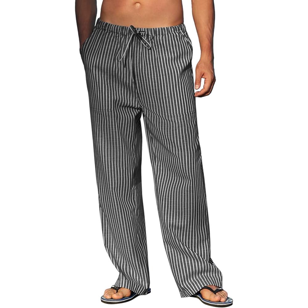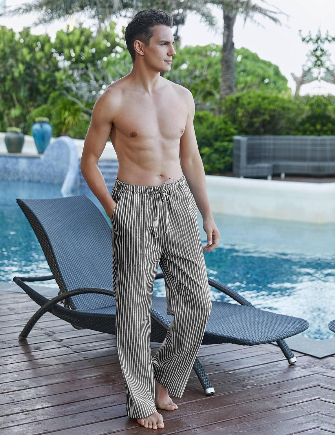 imageCOOFANDY Mens Casual Linen Pants Elastic Waist Linen Pants Drawstring Summer Beach Yoga Linen TrouserStriped Black White