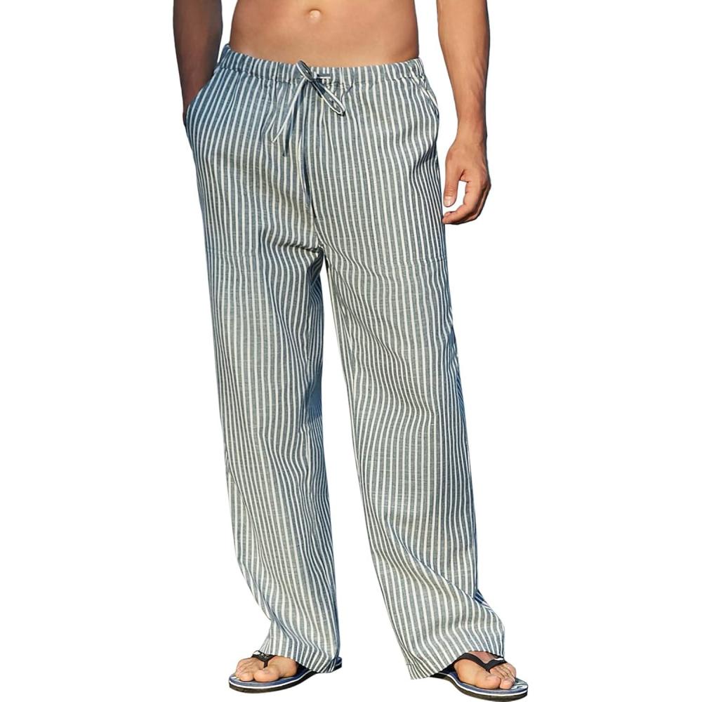 Get the COOFANDY Mens Casual Linen Pants Elastic Waist Linen Pants Drawstring Summer Beach Yoga Linen Trouser(Striped- Dark Blue) you’ve been eyeing at a discounted price during our seasonal sale event.