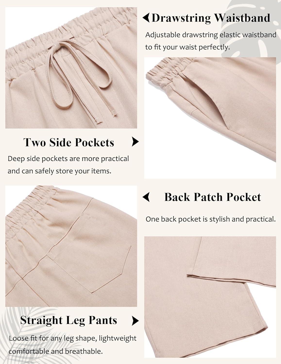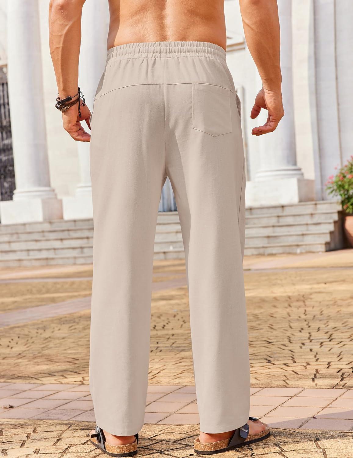 COOFANDY Men’s Casual Linen Pants Loose Fit Elastic Waist Drawstring Lightweight Pant Summer Beach Trousers(Light Khaki)