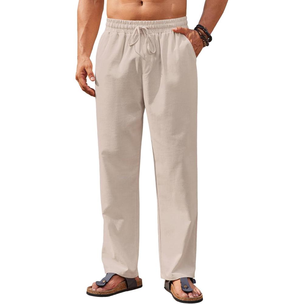 COOFANDY Men's Casual Linen Pants Loose Fit Elastic Waist Drawstring Lightweight Pant Summer Beach Trousers(Light Khaki)