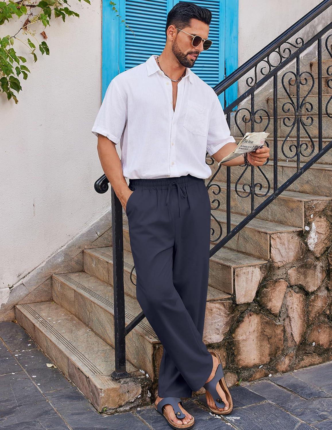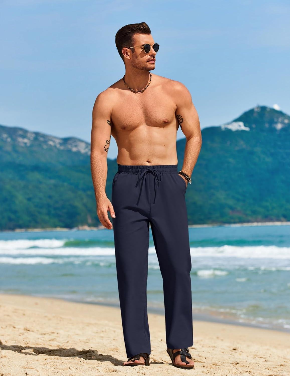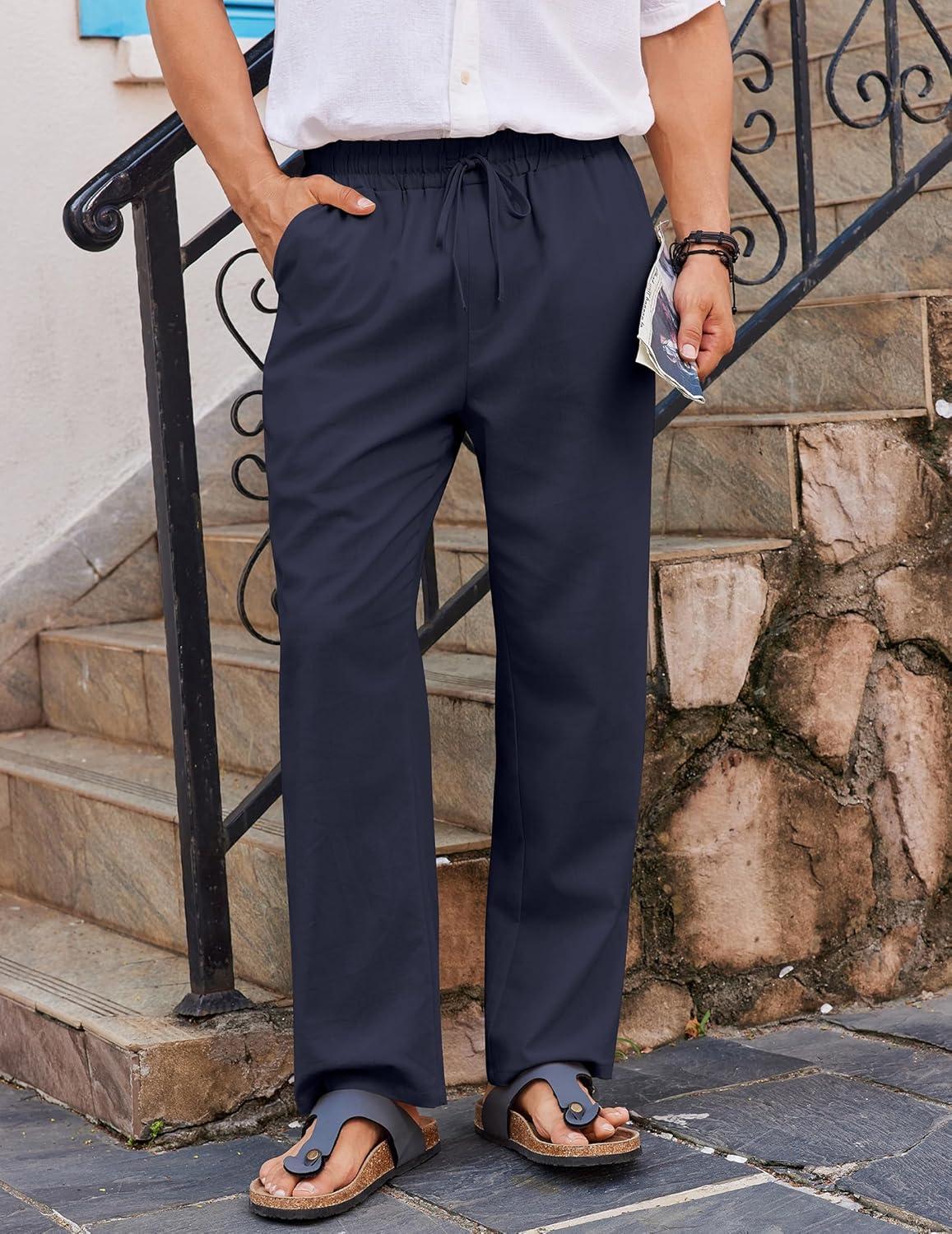 Get the COOFANDY Men’s Casual Linen Pants Loose Fit Elastic Waist Drawstring Lightweight Pant Summer Beach Trousers(Navy Blue) you’ve been eyeing at a discounted price during our seasonal sale event.