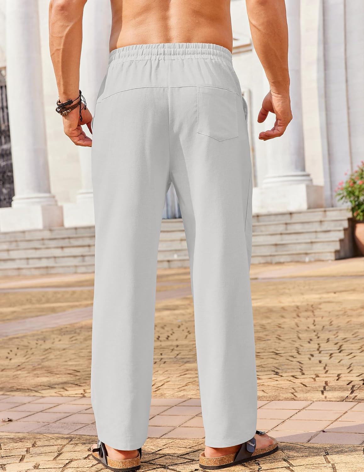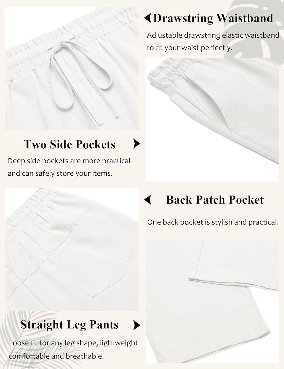 imageCOOFANDY Mens Casual Linen Pants Loose Fit Elastic Waist Drawstring Lightweight Pant Summer Beach TrousersWhite