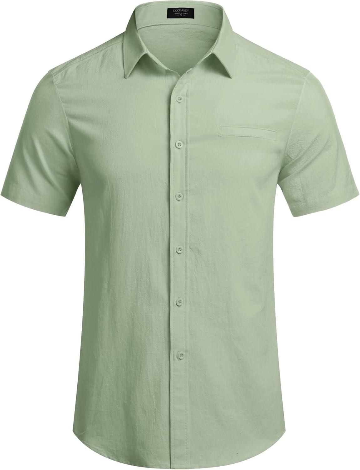 COOFANDY Mens Casual Linen Shirt Short Sleeve Button Down Shirt Summer Beach Hawaiian Shirts(Green)
