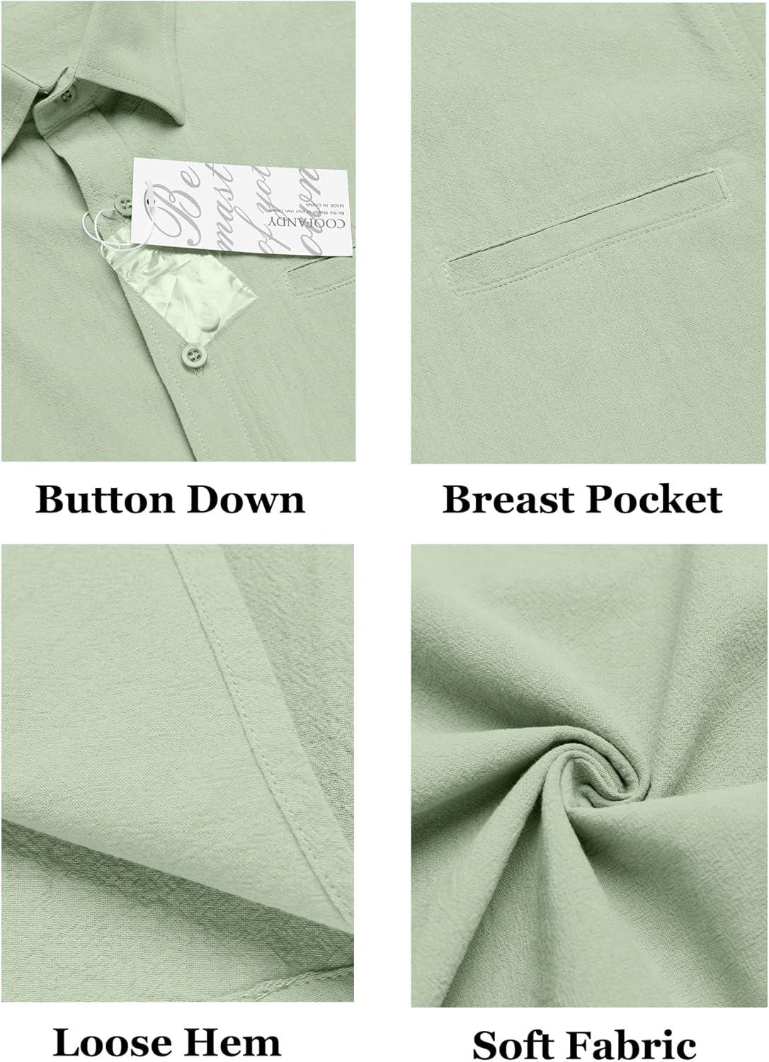 imageCOOFANDY Mens Casual Linen Shirt Short Sleeve Button Down Shirt Summer Beach Hawaiian ShirtsGreen