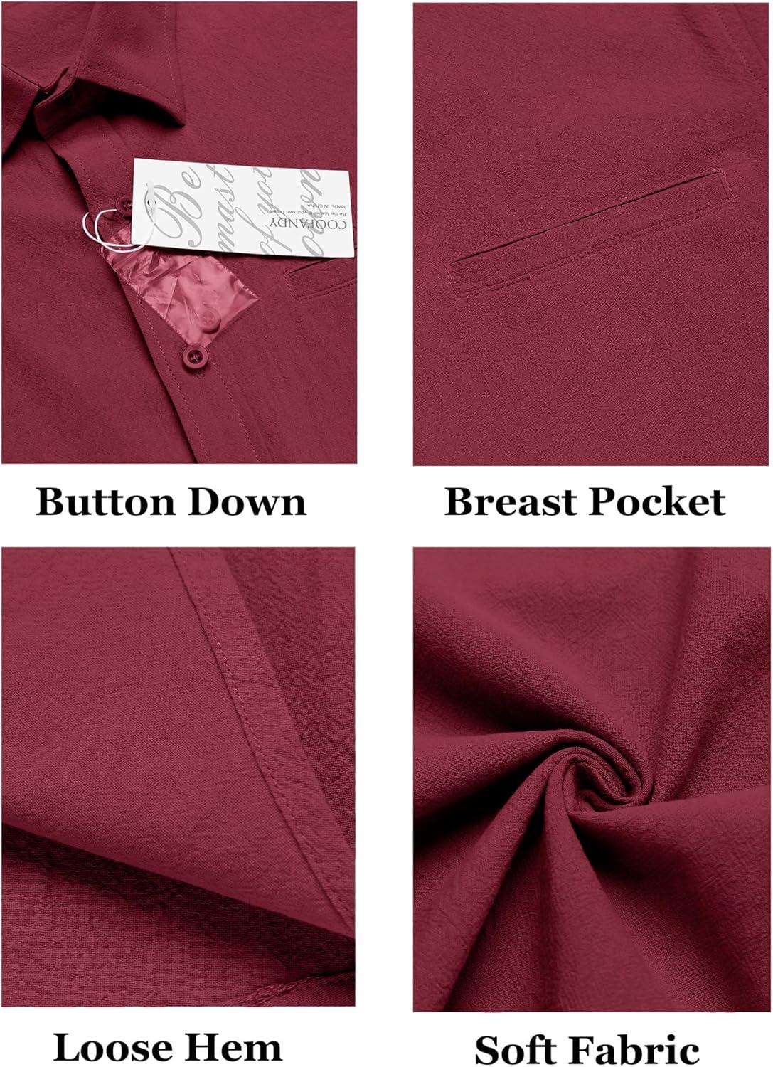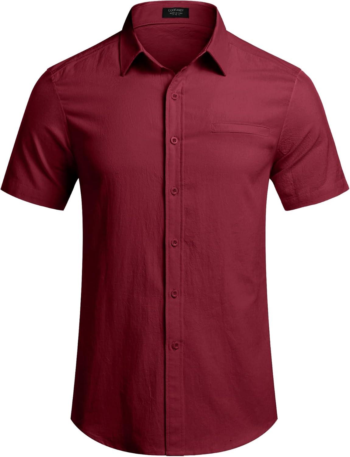 COOFANDY Mens Casual Linen Shirt Short Sleeve Button Down Shirt Summer Beach Hawaiian Shirts(Wine Red)