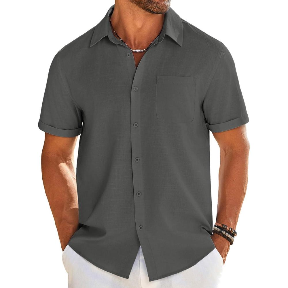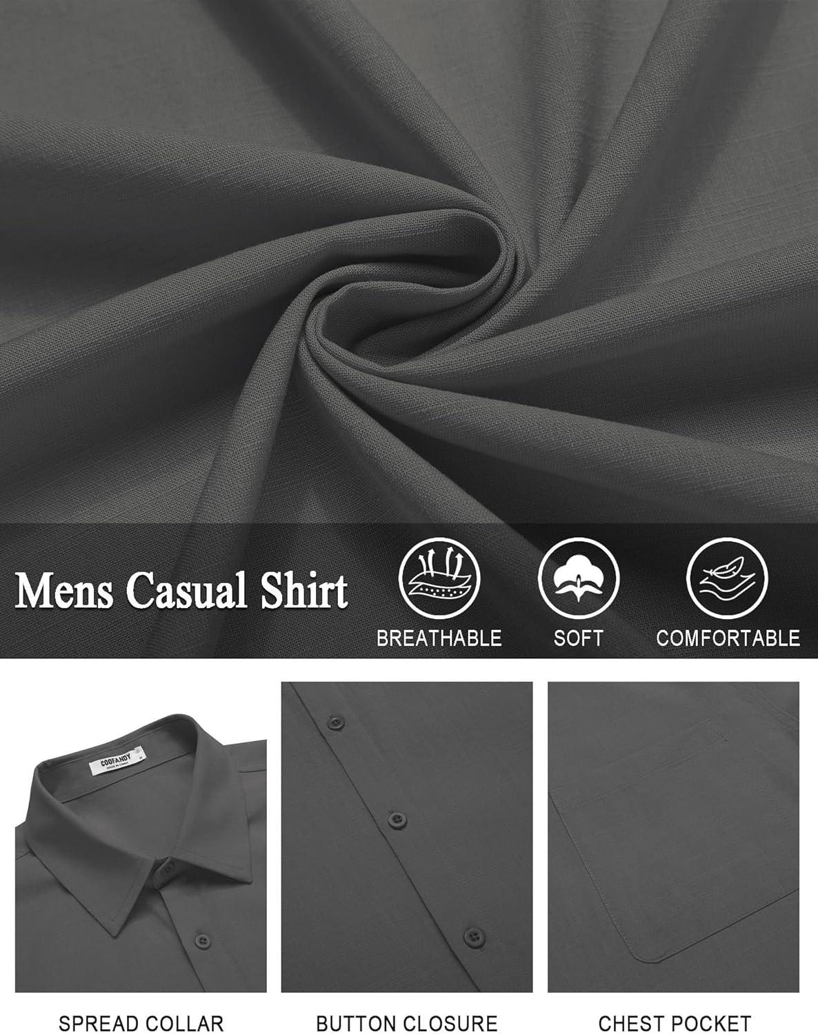COOFANDY Mens Casual Linen Shirt Short Sleeve Button Down Shirt Summer Beach Shirts with Pocket(Dark Grey)