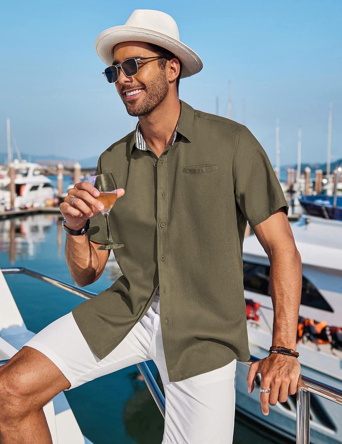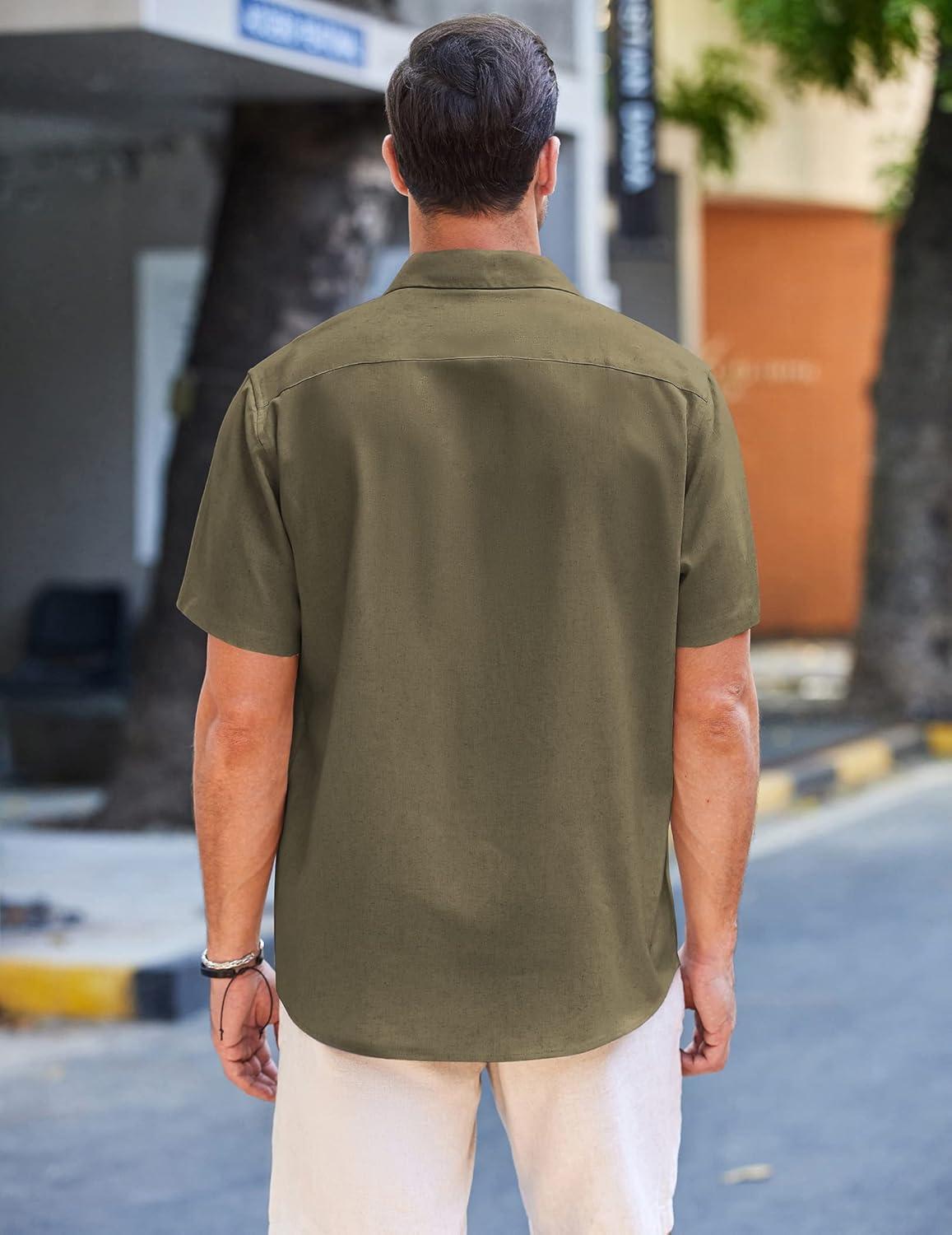 COOFANDY Men's Casual Linen Shirts Short Sleeve Button Down Shirt Summer Beach Tops(Army Green)