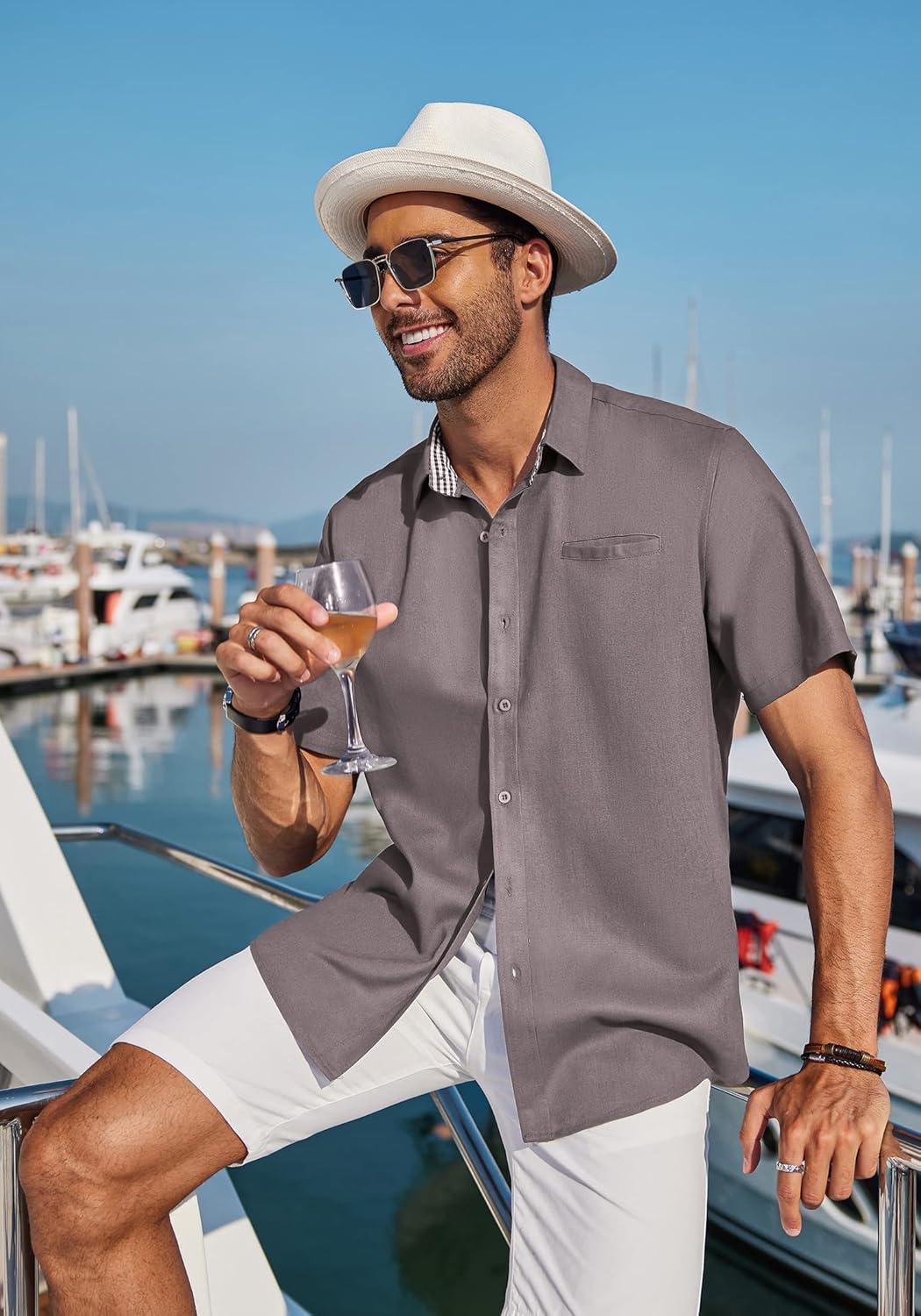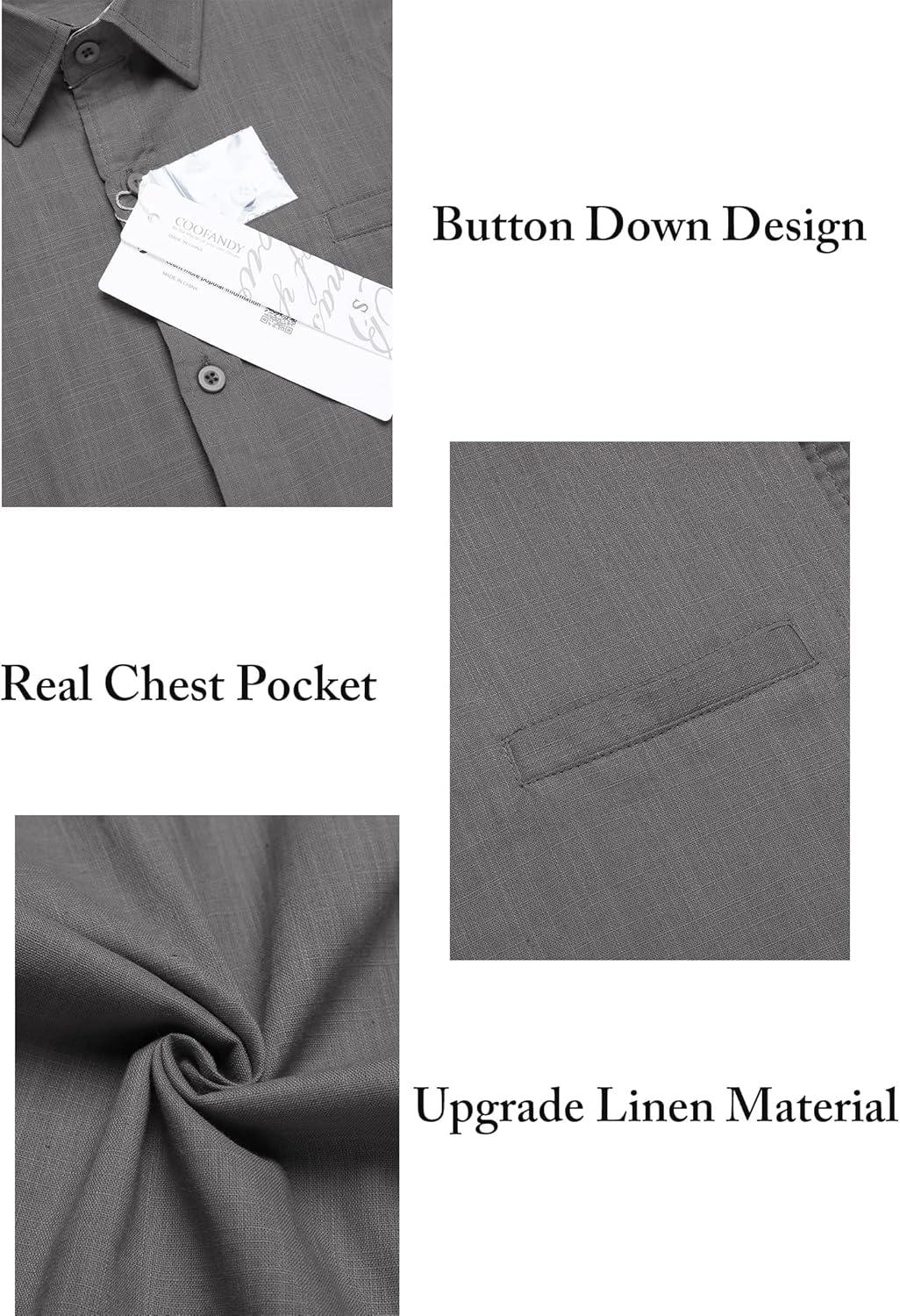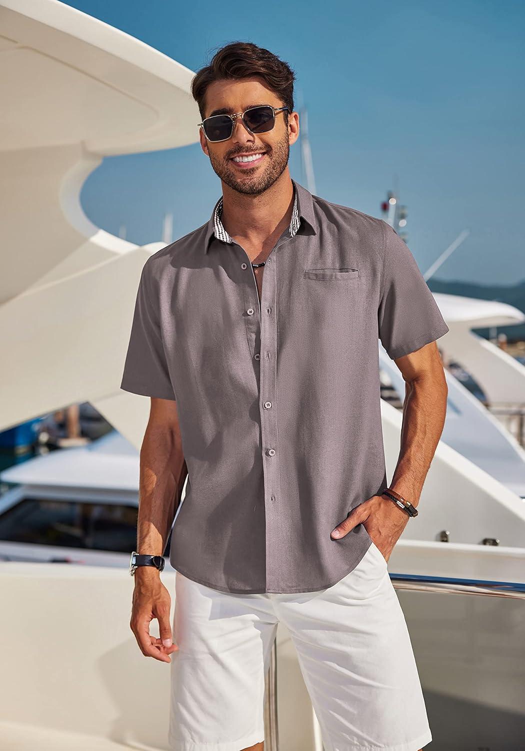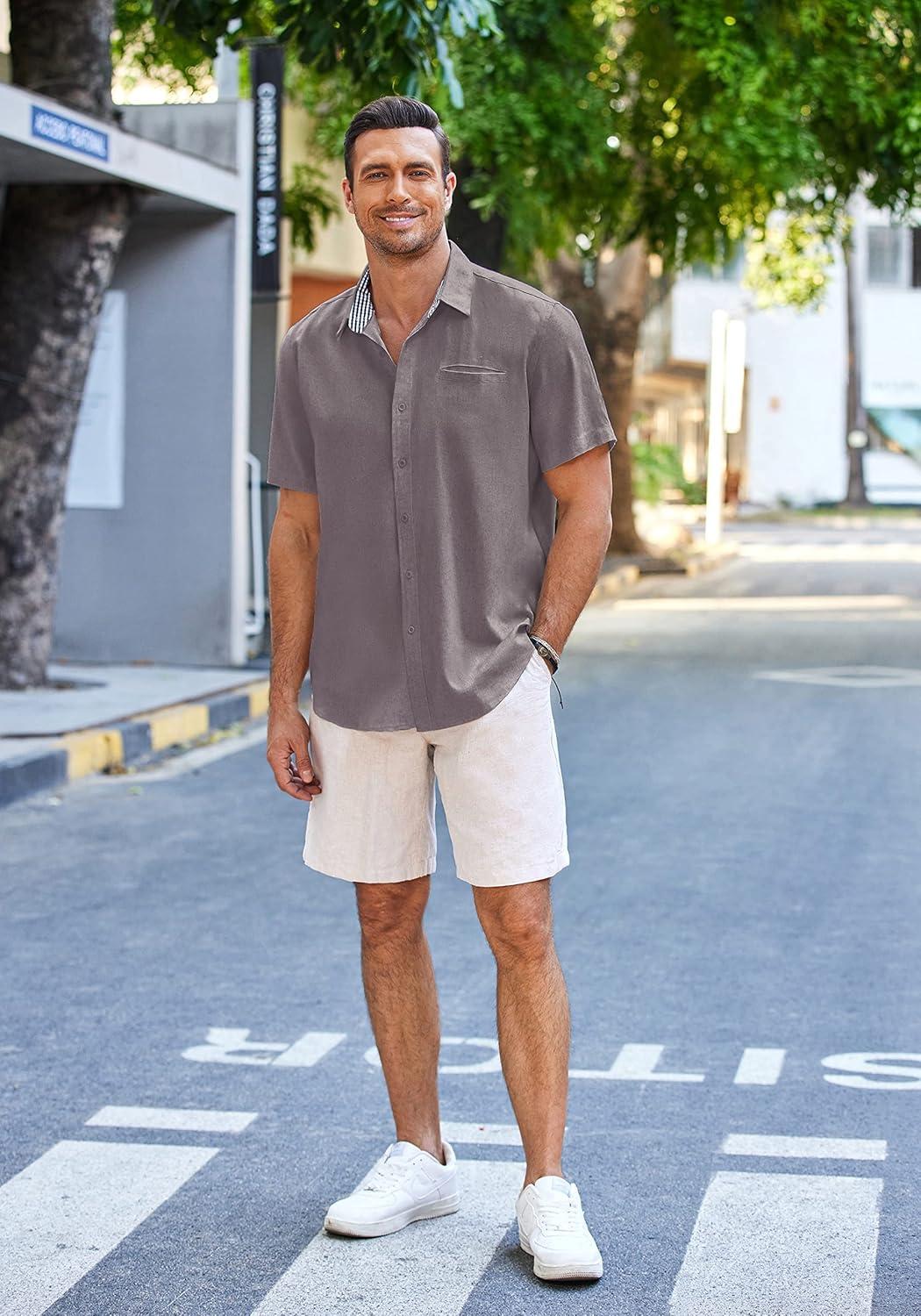 COOFANDY Men's Casual Linen Shirts Short Sleeve Button Down Shirt Summer Beach Tops(Dark Grey)